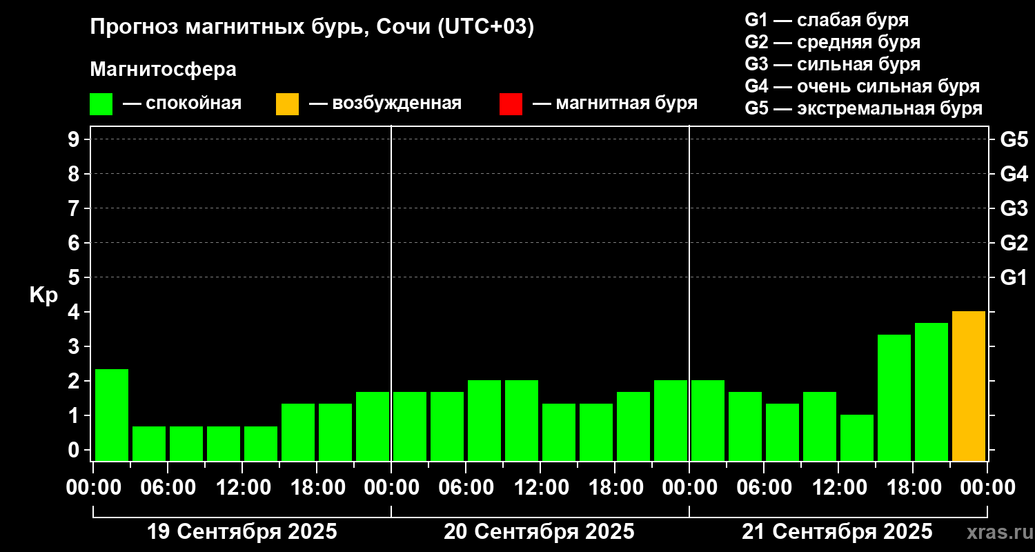 Прогноз магнитных бурь Сочи на 19 сентября 2025 года