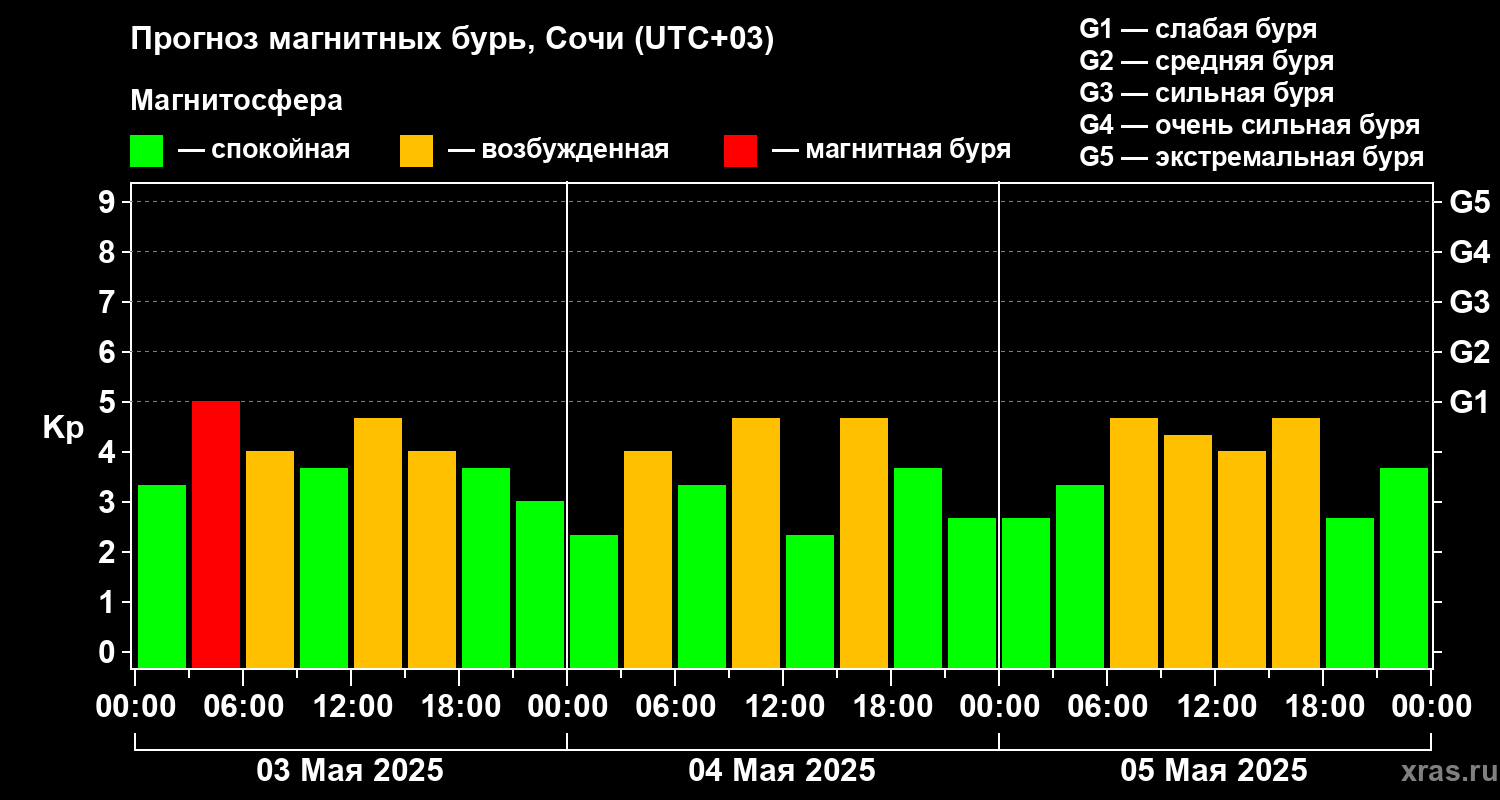 Прогноз магнитных бурь Сочи — 3 мая 2025 года