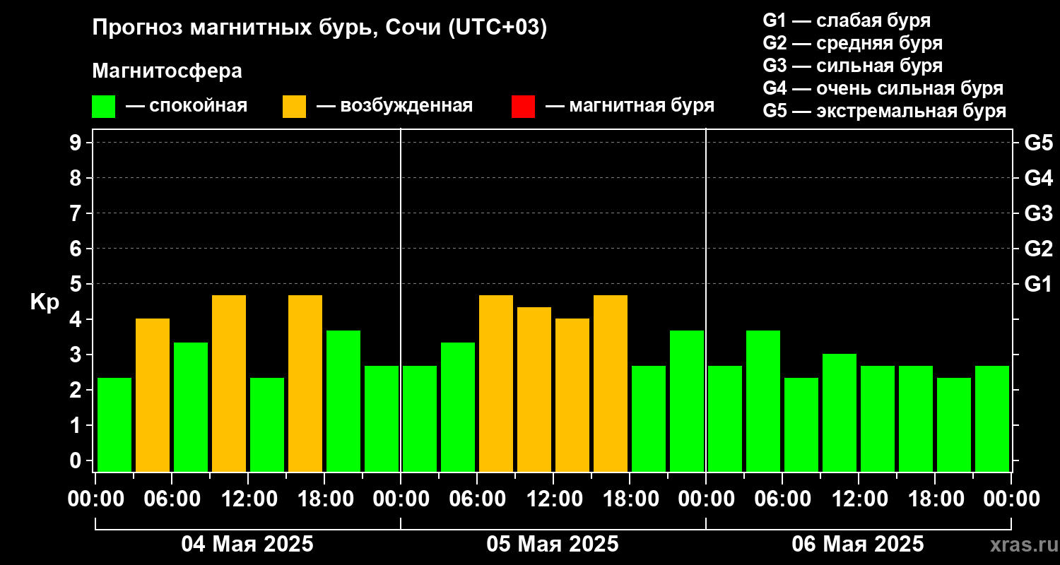 Прогноз магнитных бурь Сочи — 4 мая 2025 года
