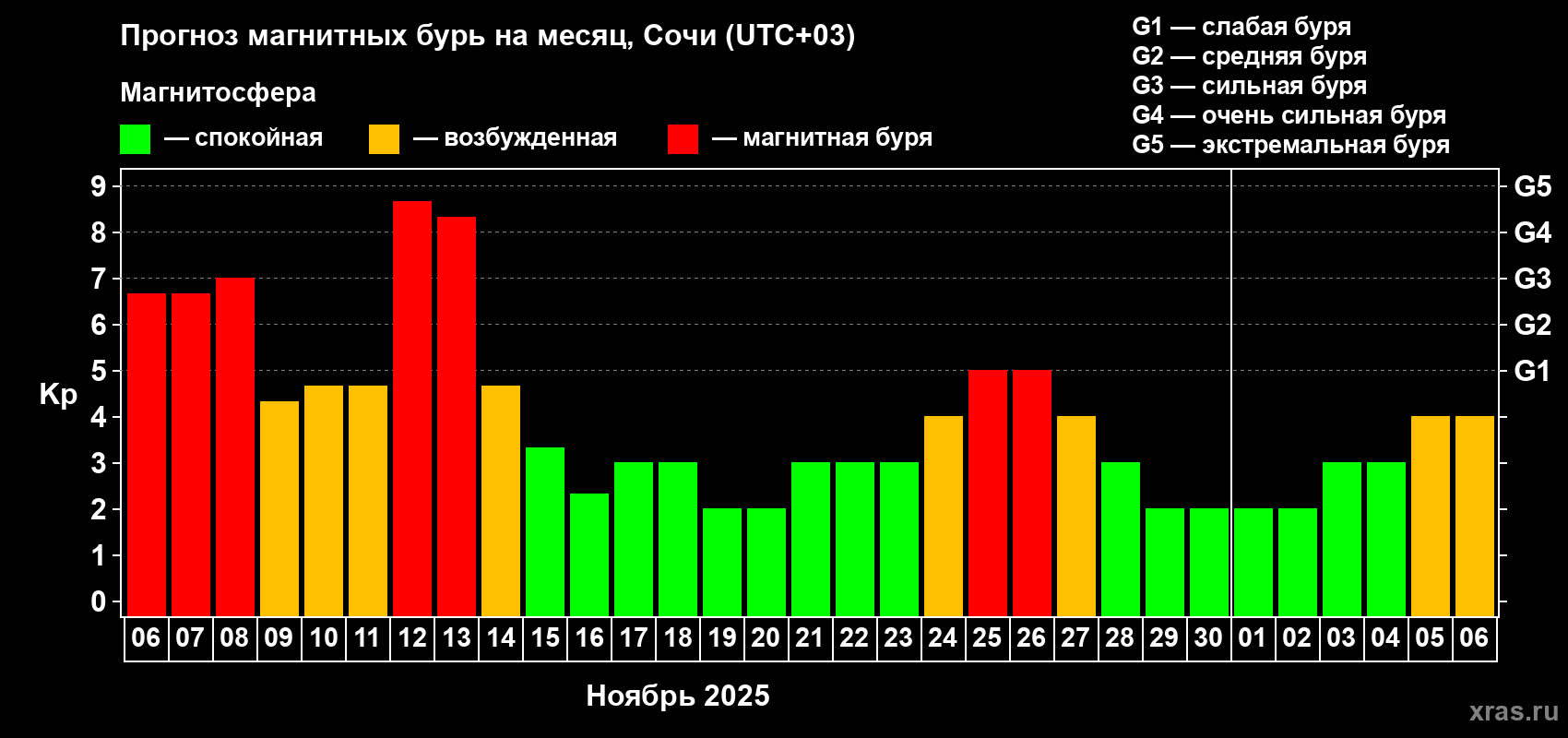 Прогноз магнитных бурь Сочи — 6 ноября 2025 года