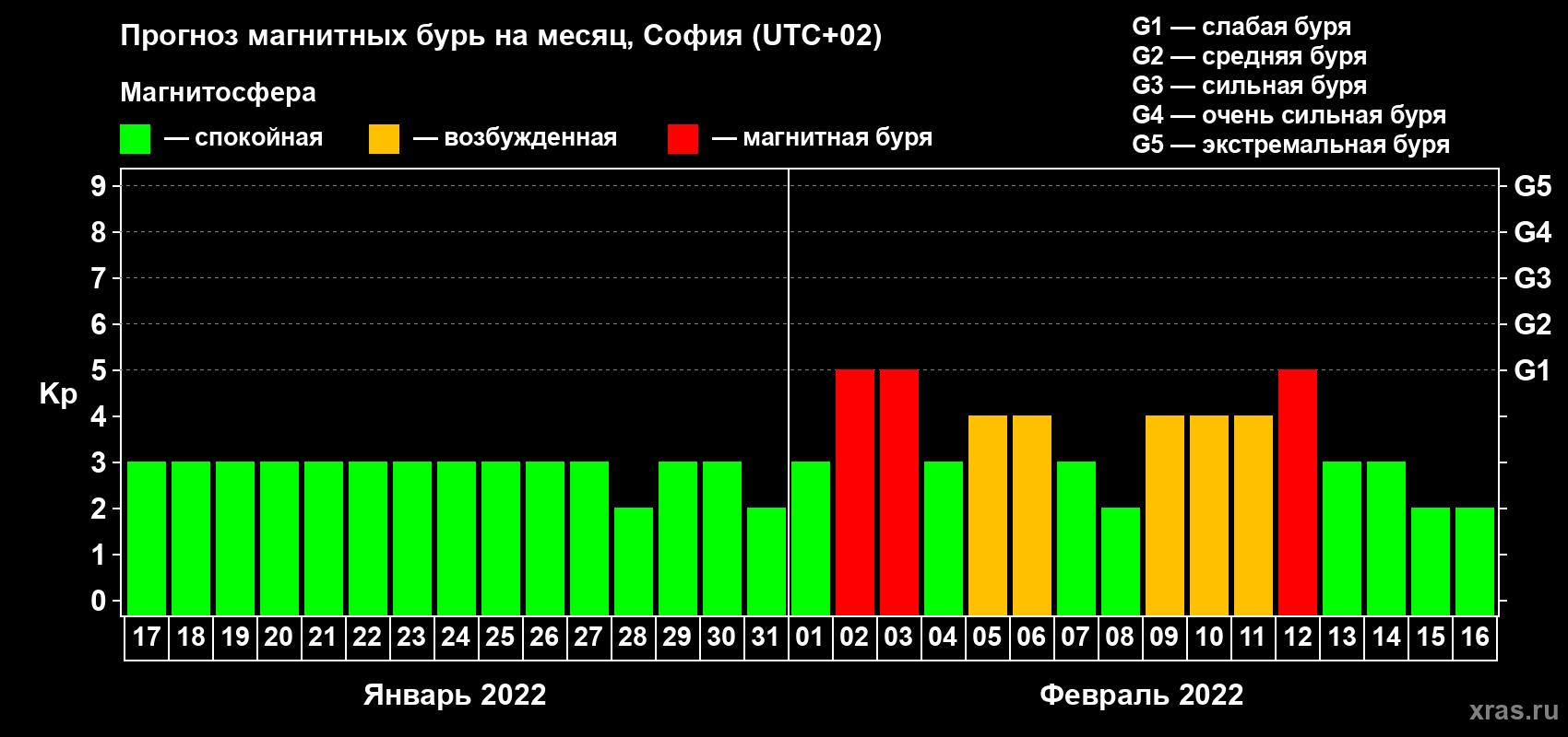 Прогноз магнитных бурь в Софии — 17 января 2022 года