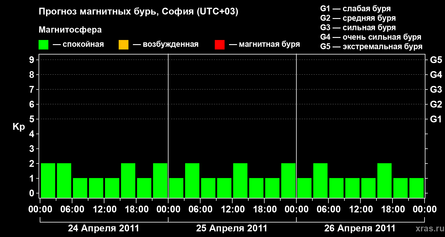 Прогноз магнитных бурь в Софии на 24 апреля 2011 года