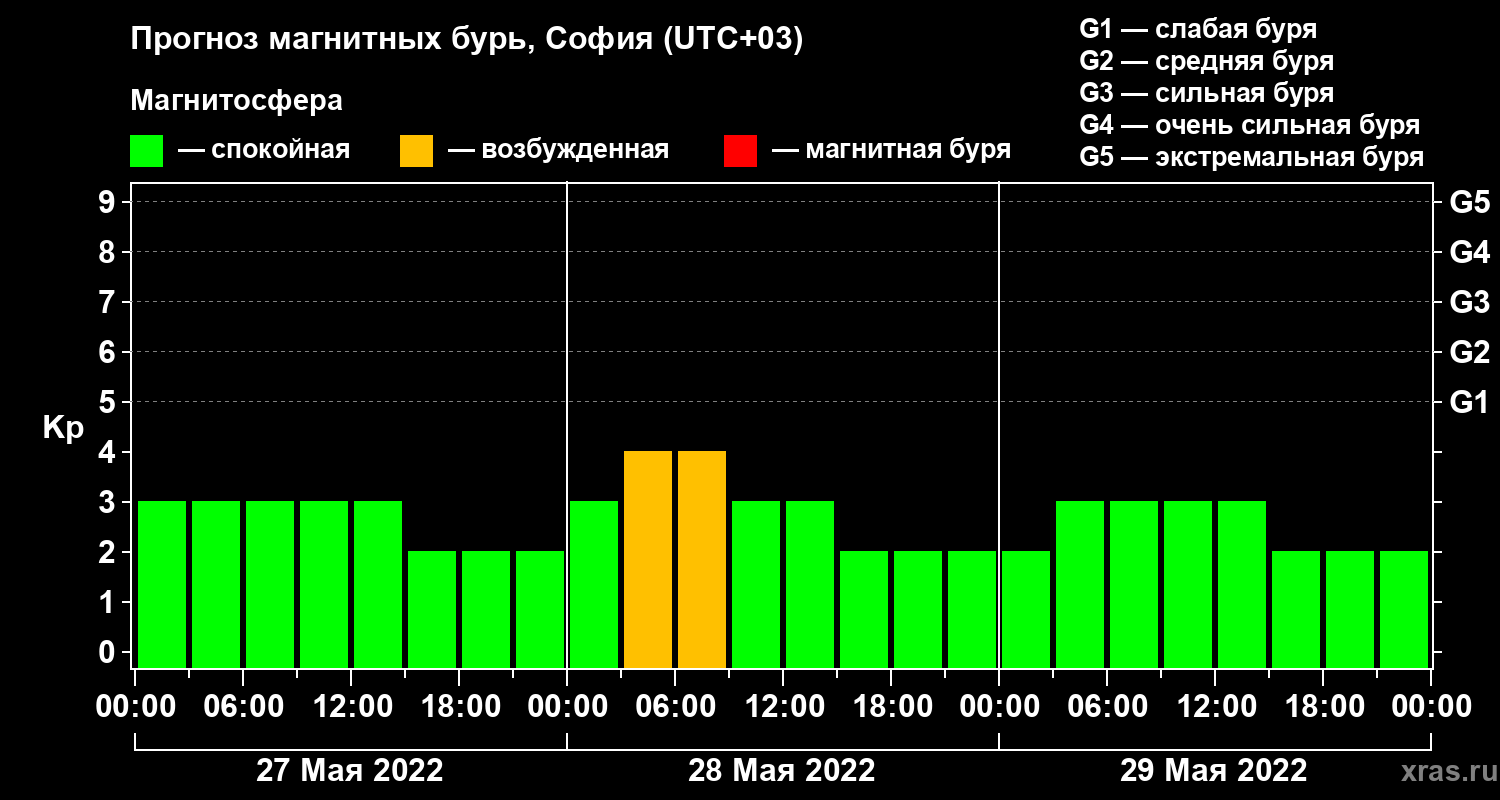 Прогноз магнитных бурь в Софии — 27 мая 2022 года