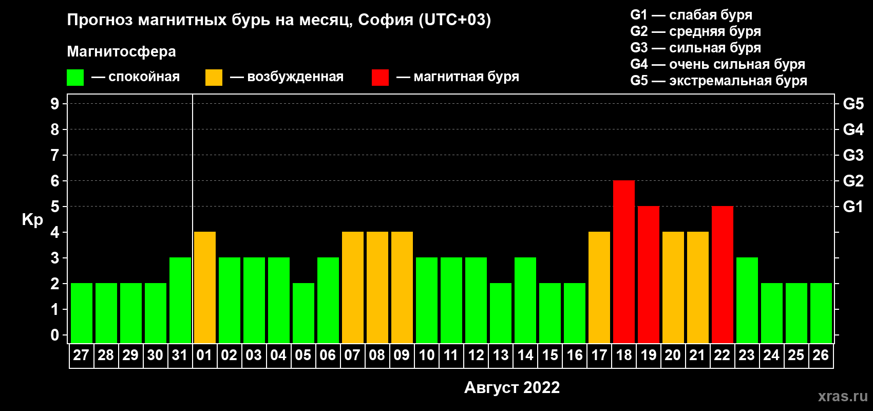 Прогноз магнитных бурь в Софии — 27 июля 2022 года