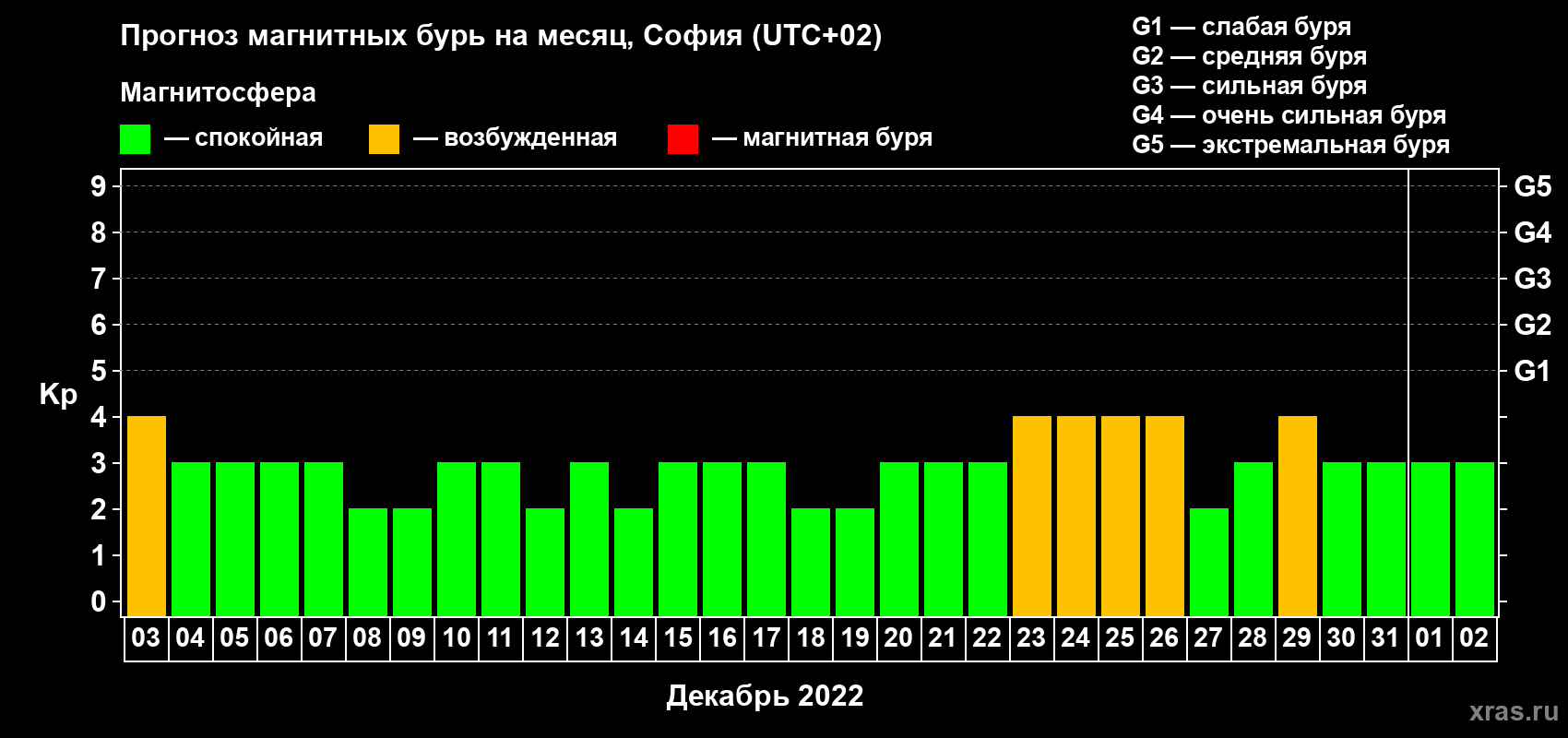 Прогноз магнитных бурь в Софии — 3 декабря 2021 года