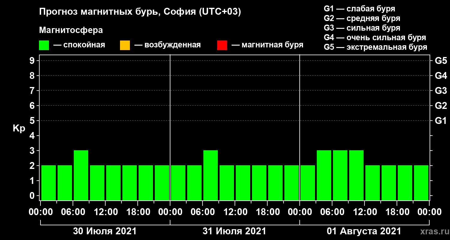 Прогноз магнитных бурь в Софии — 30 июля 2021 года