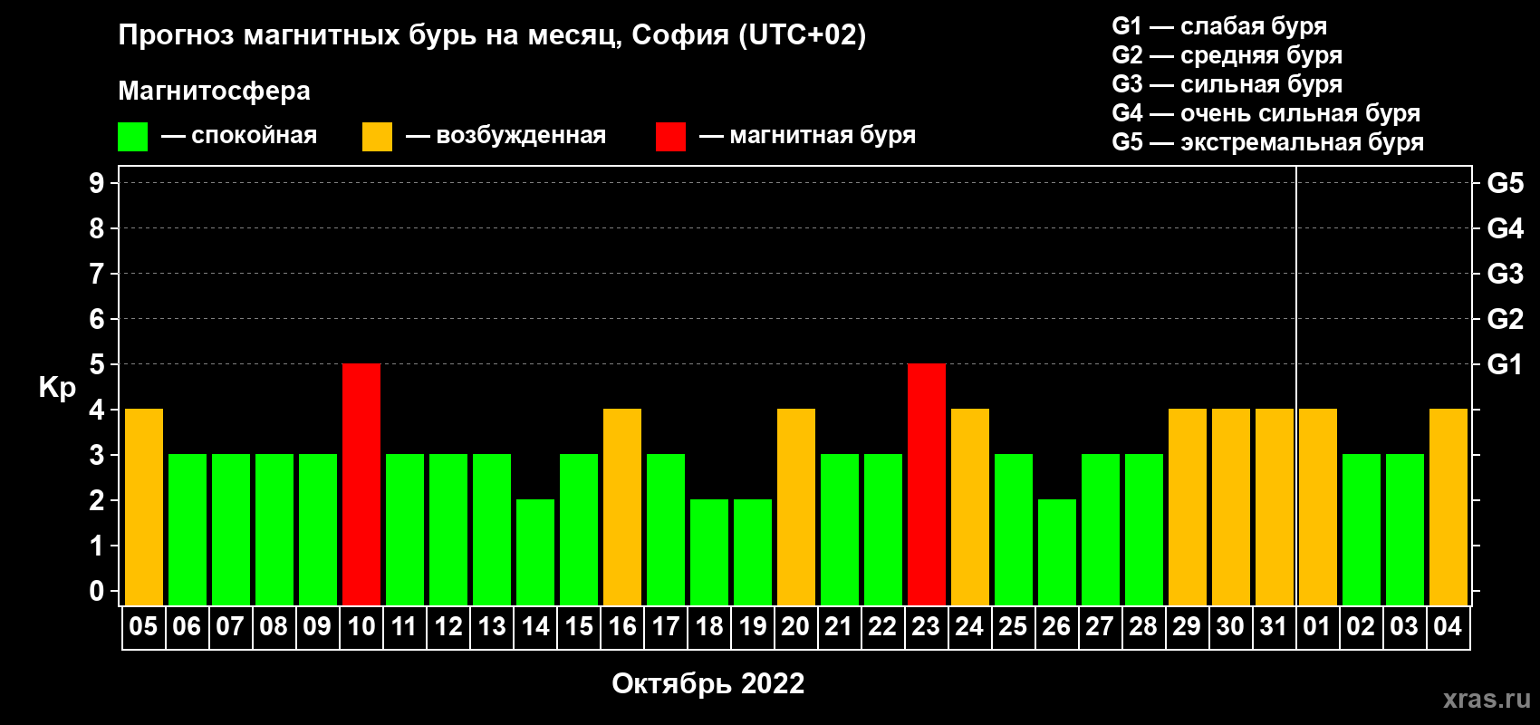 Прогноз магнитных бурь в Софии — 5 октября 2022 года