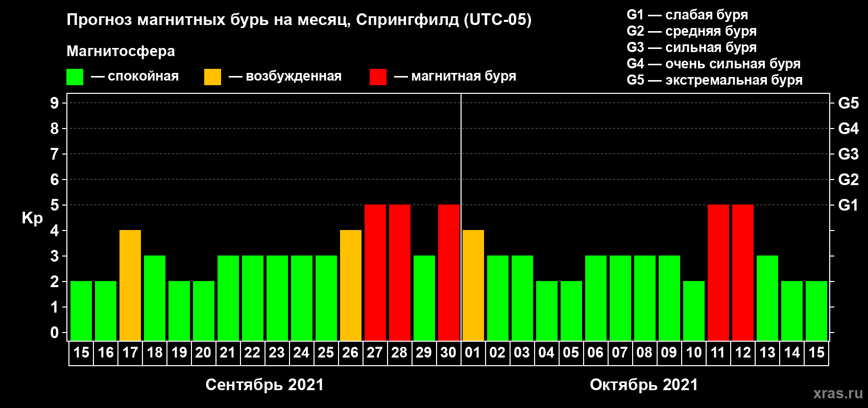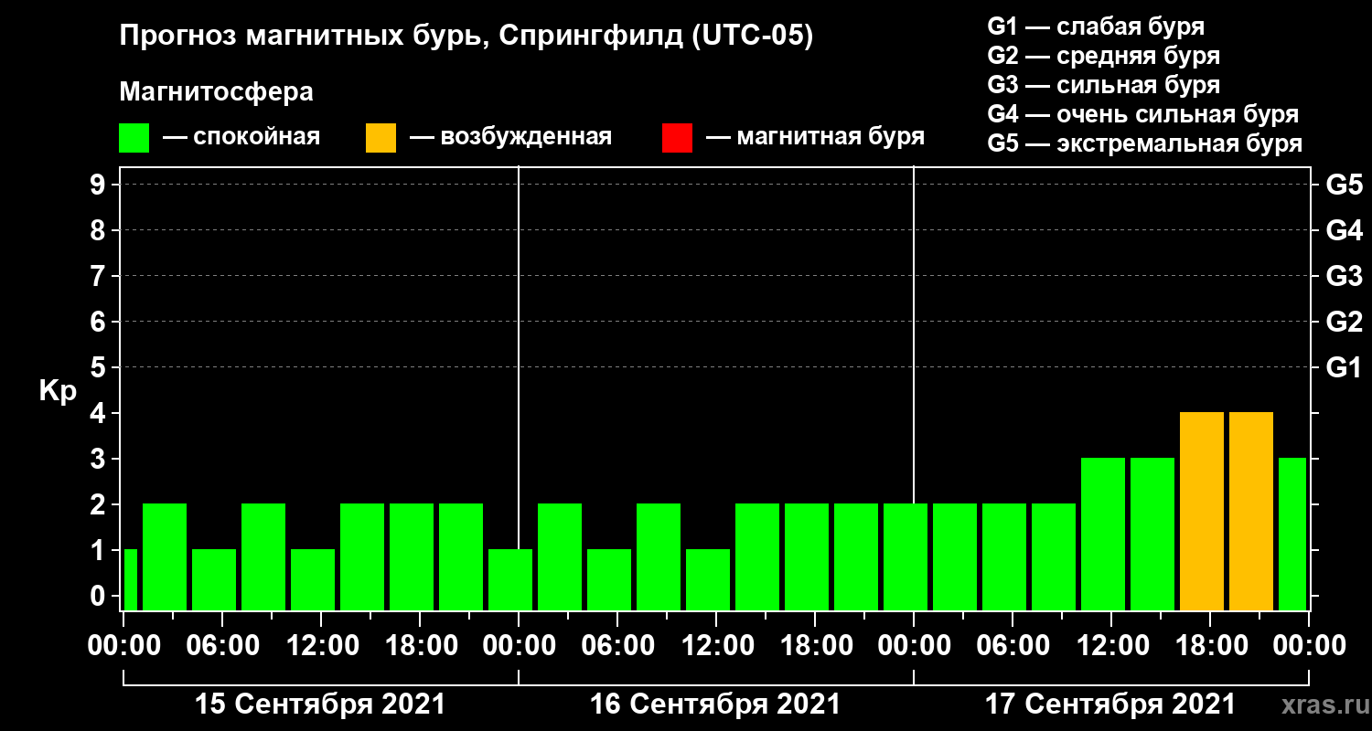 Прогноз магнитных бурь в Спрингфилде — 15 сентября 2021 года