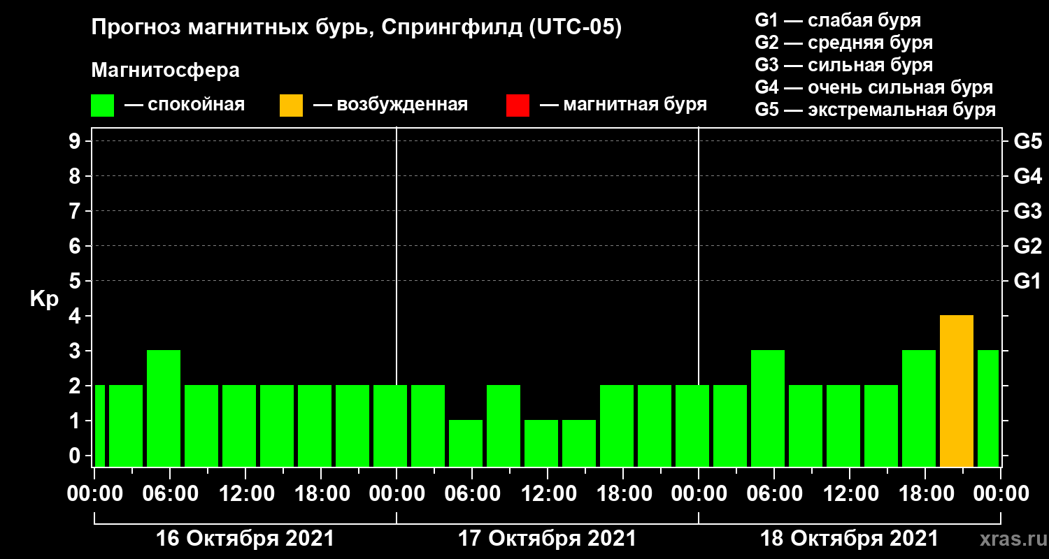 Прогноз магнитных бурь в Спрингфилде — 16 октября 2021 года
