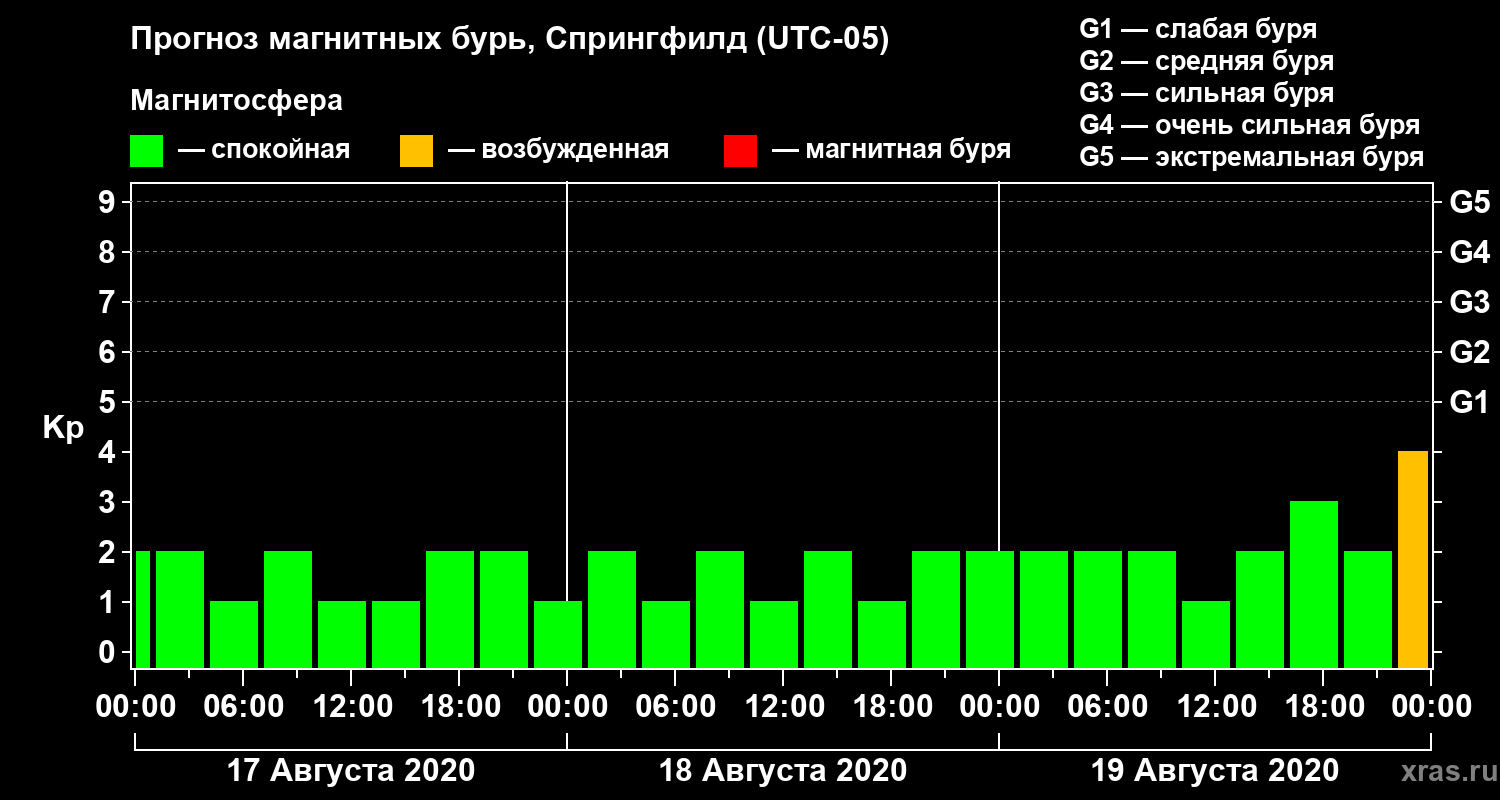 Прогноз магнитных бурь в Спрингфилде — 17 августа 2020 года