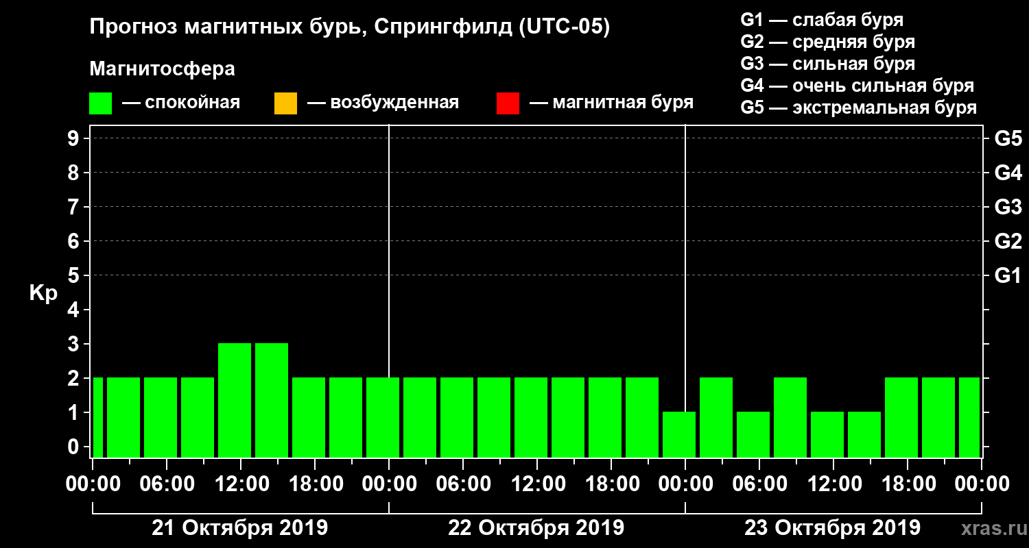 Прогноз магнитных бурь в Спрингфилде — 21 октября 2019 года