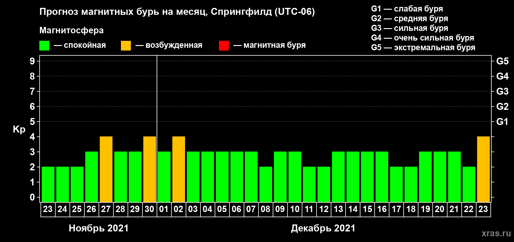 Прогноз магнитных бурь в Спрингфилде — 23 ноября 2021 года