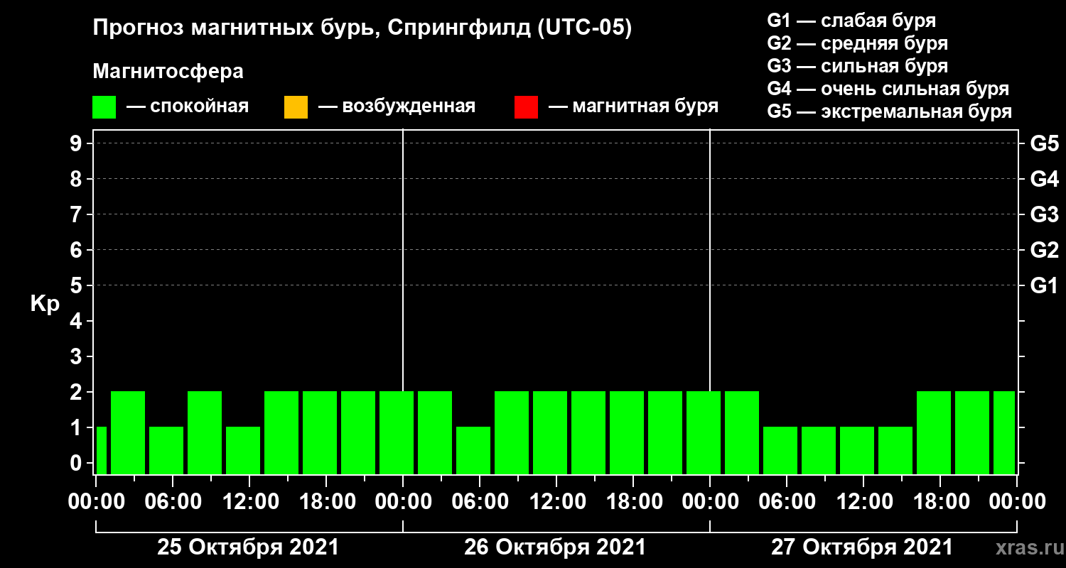 Прогноз магнитных бурь в Спрингфилде на 25 октября 2021 года