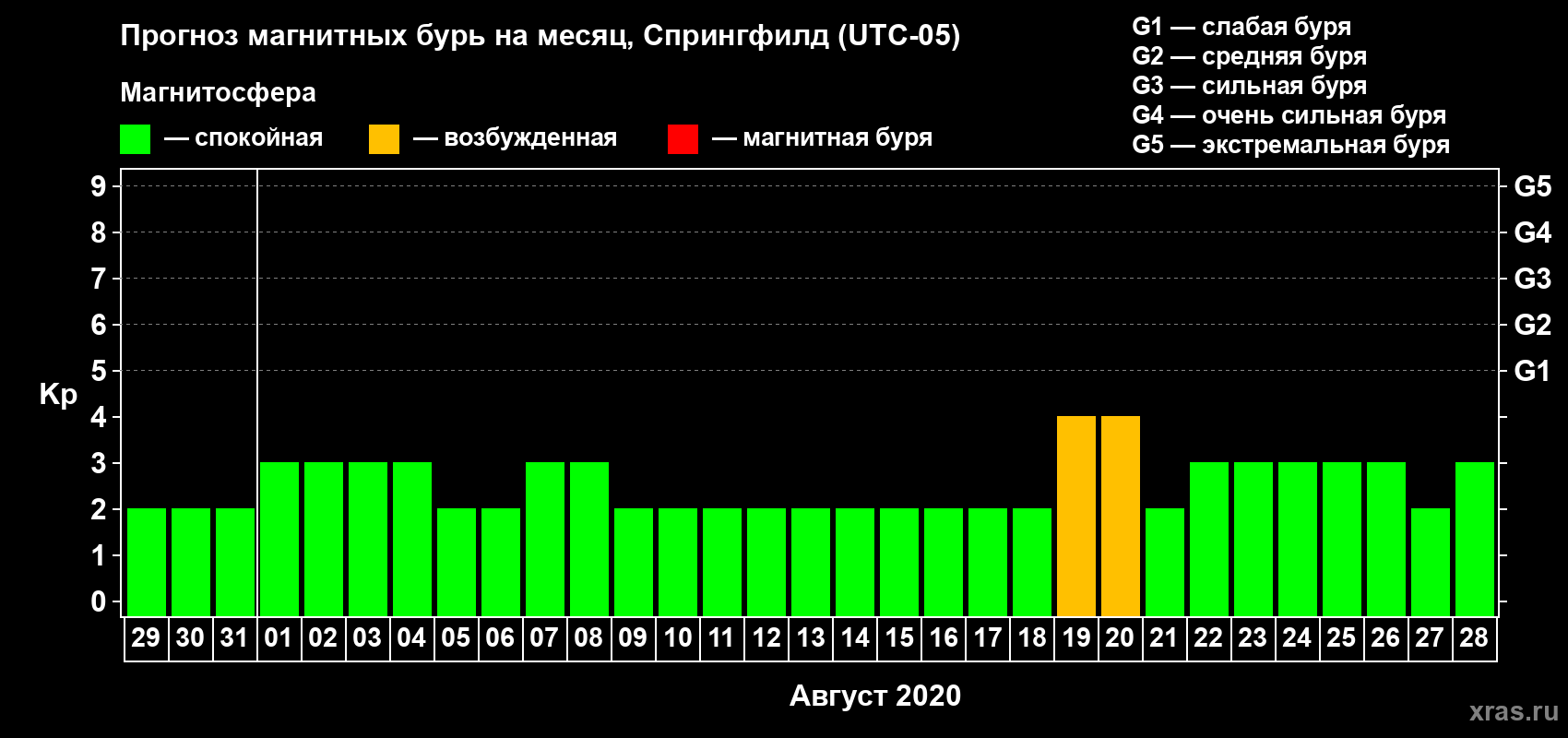 Прогноз магнитных бурь в Спрингфилде — 29 июля 2020 года