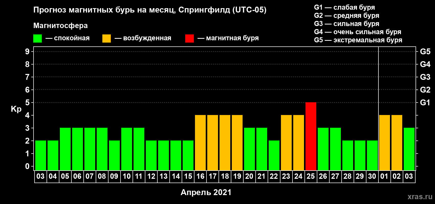 Прогноз магнитных бурь в Спрингфилде — 3 апреля 2021 года