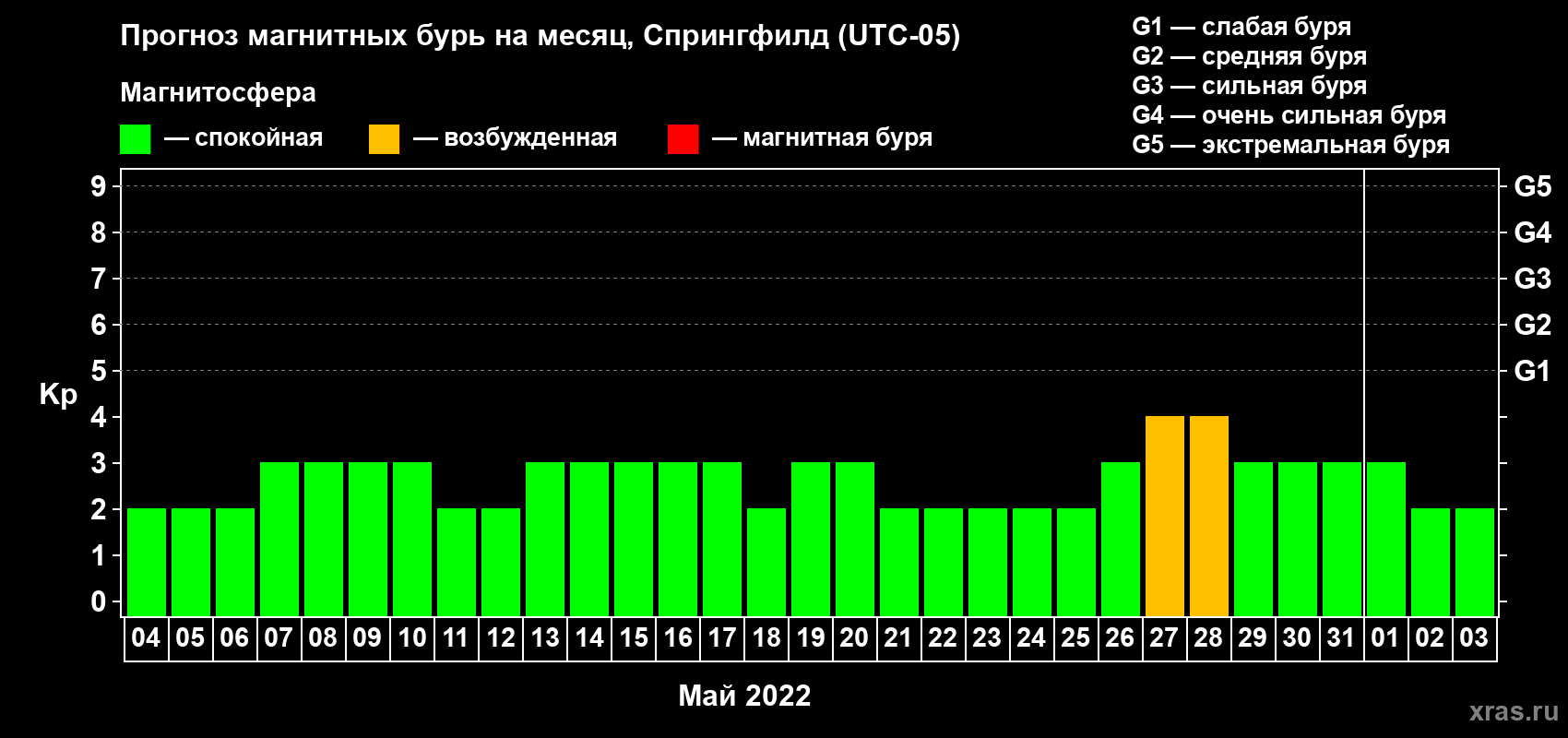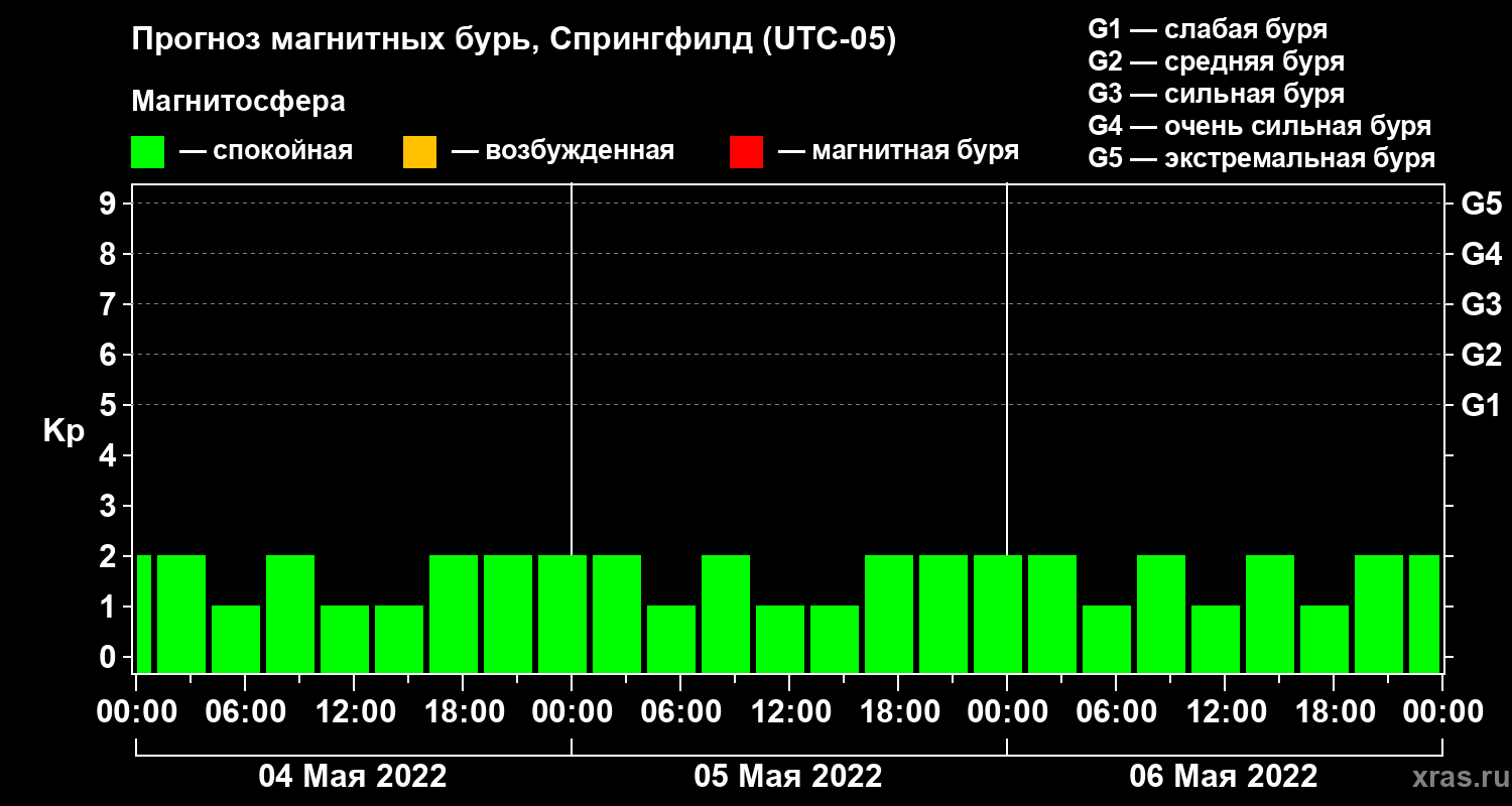 Прогноз магнитных бурь в Спрингфилде на 4 мая 2022 года