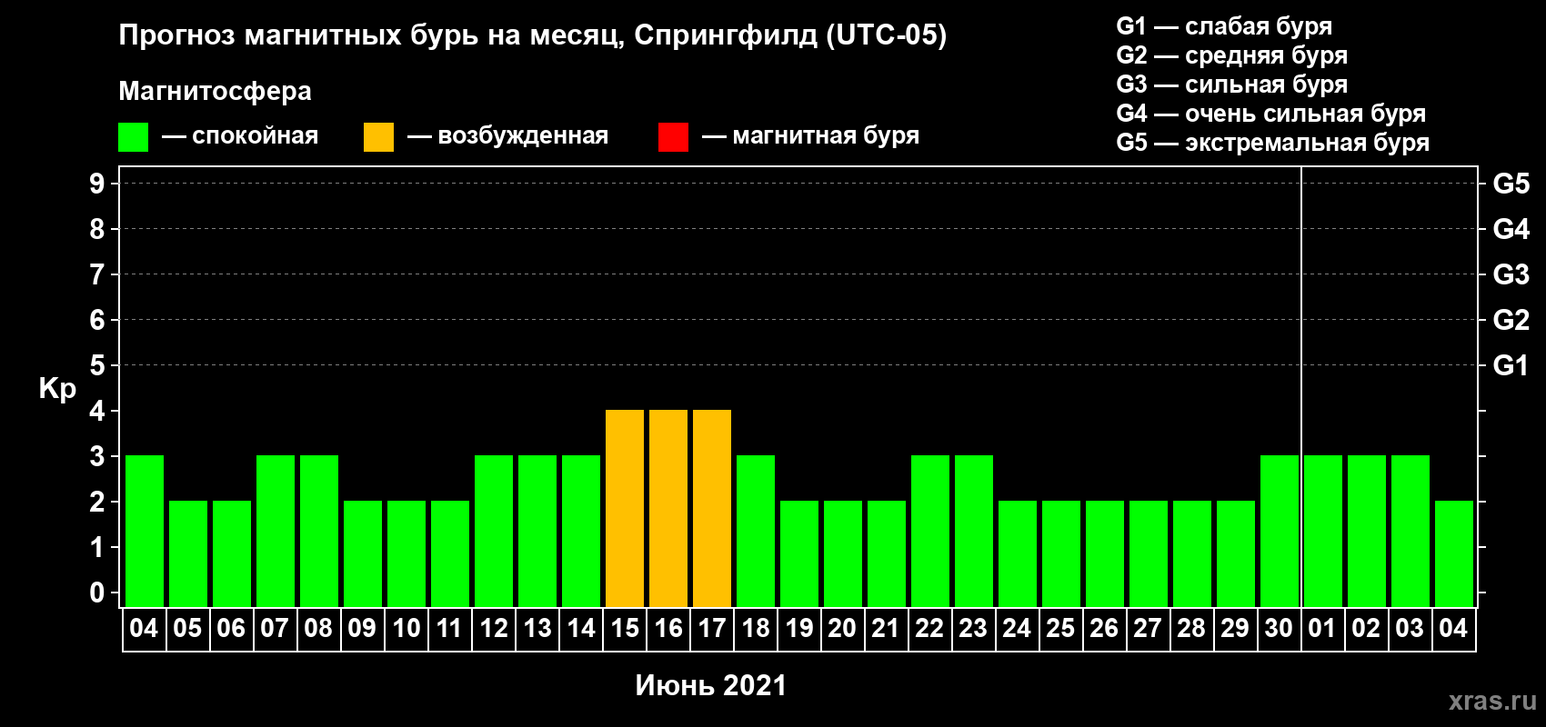 Прогноз магнитных бурь в Спрингфилде — 4 июня 2021 года