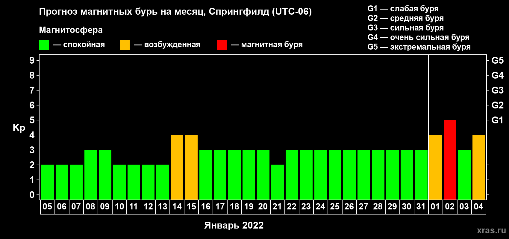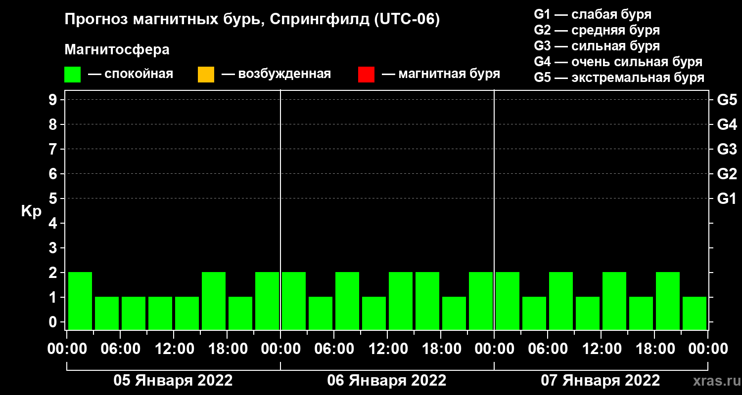 Прогноз магнитных бурь в Спрингфилде на 5 января 2022 года