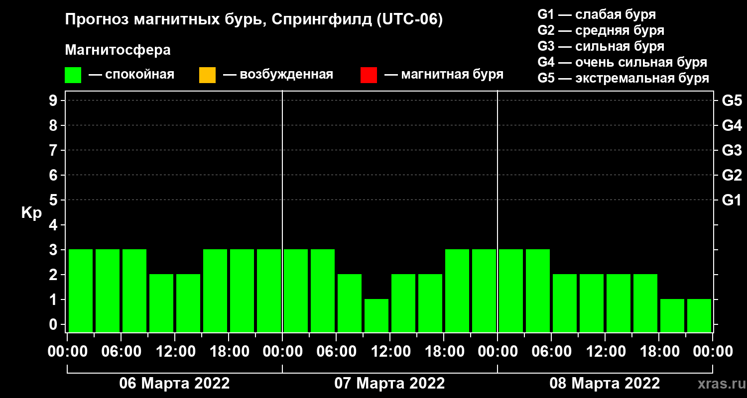Прогноз магнитных бурь в Спрингфилде на 6 марта 2022 года