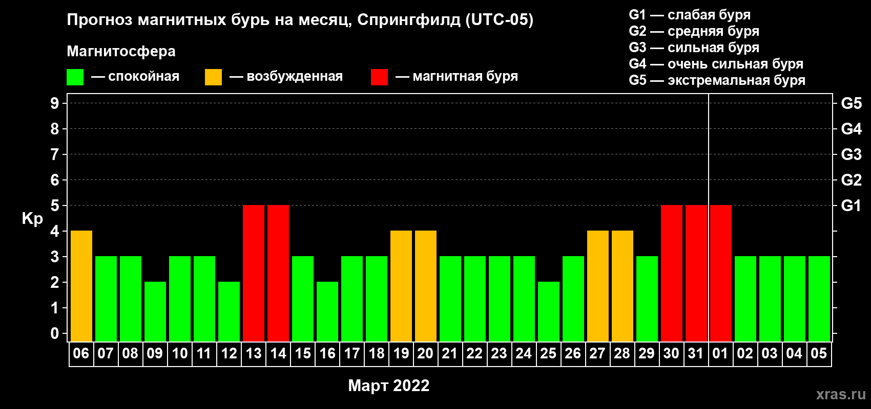 Прогноз магнитных бурь в Спрингфилде — 6 марта 2022 года