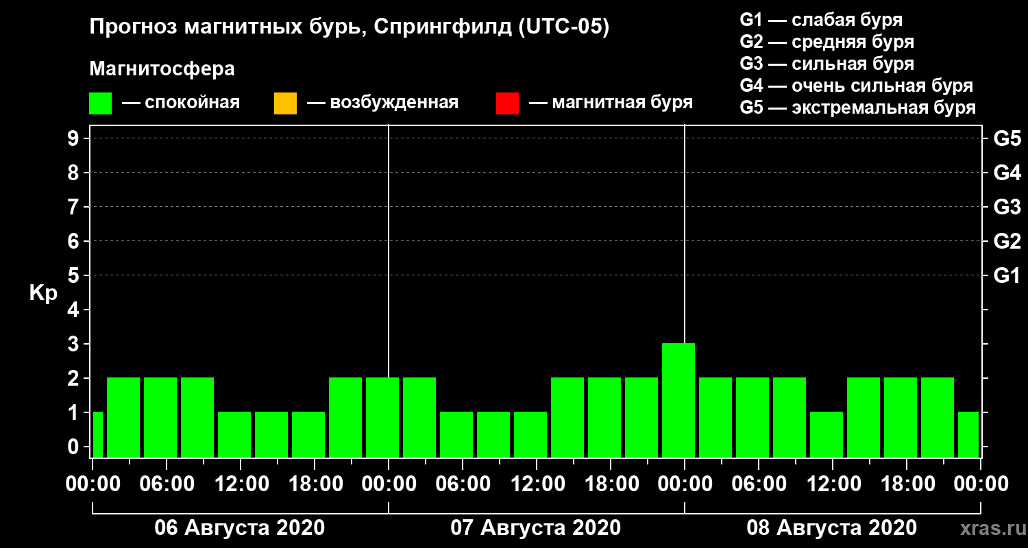 Прогноз магнитных бурь в Спрингфилде — 6 августа 2020 года