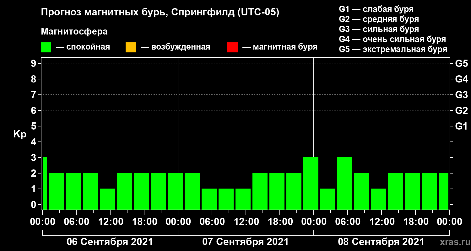 Прогноз магнитных бурь в Спрингфилде на 6 сентября 2021 года