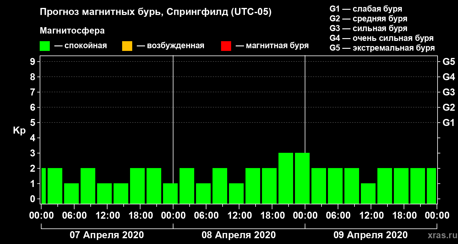 Прогноз магнитных бурь в Спрингфилде на 7 апреля 2020 года
