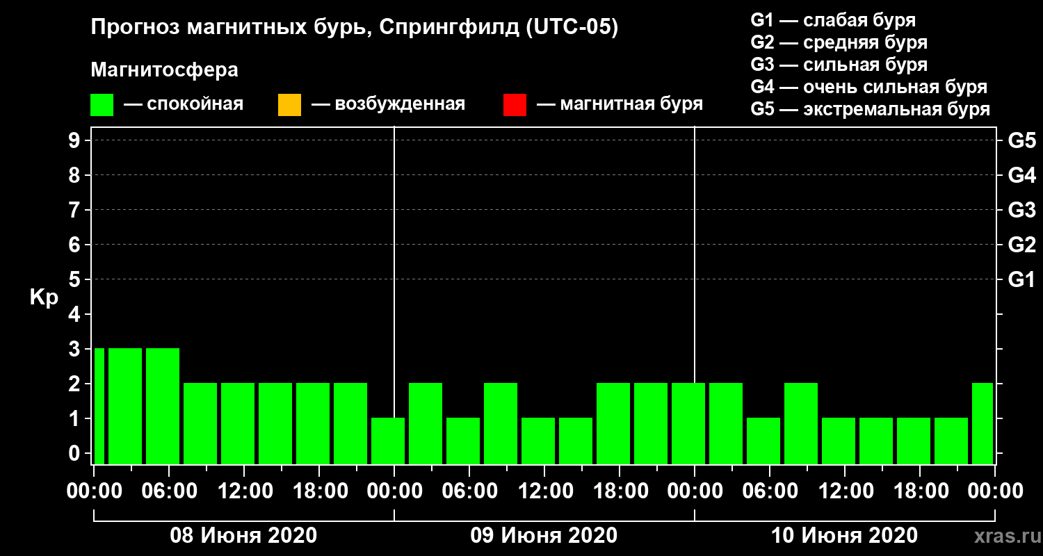 Прогноз магнитных бурь в Спрингфилде — 8 июня 2020 года
