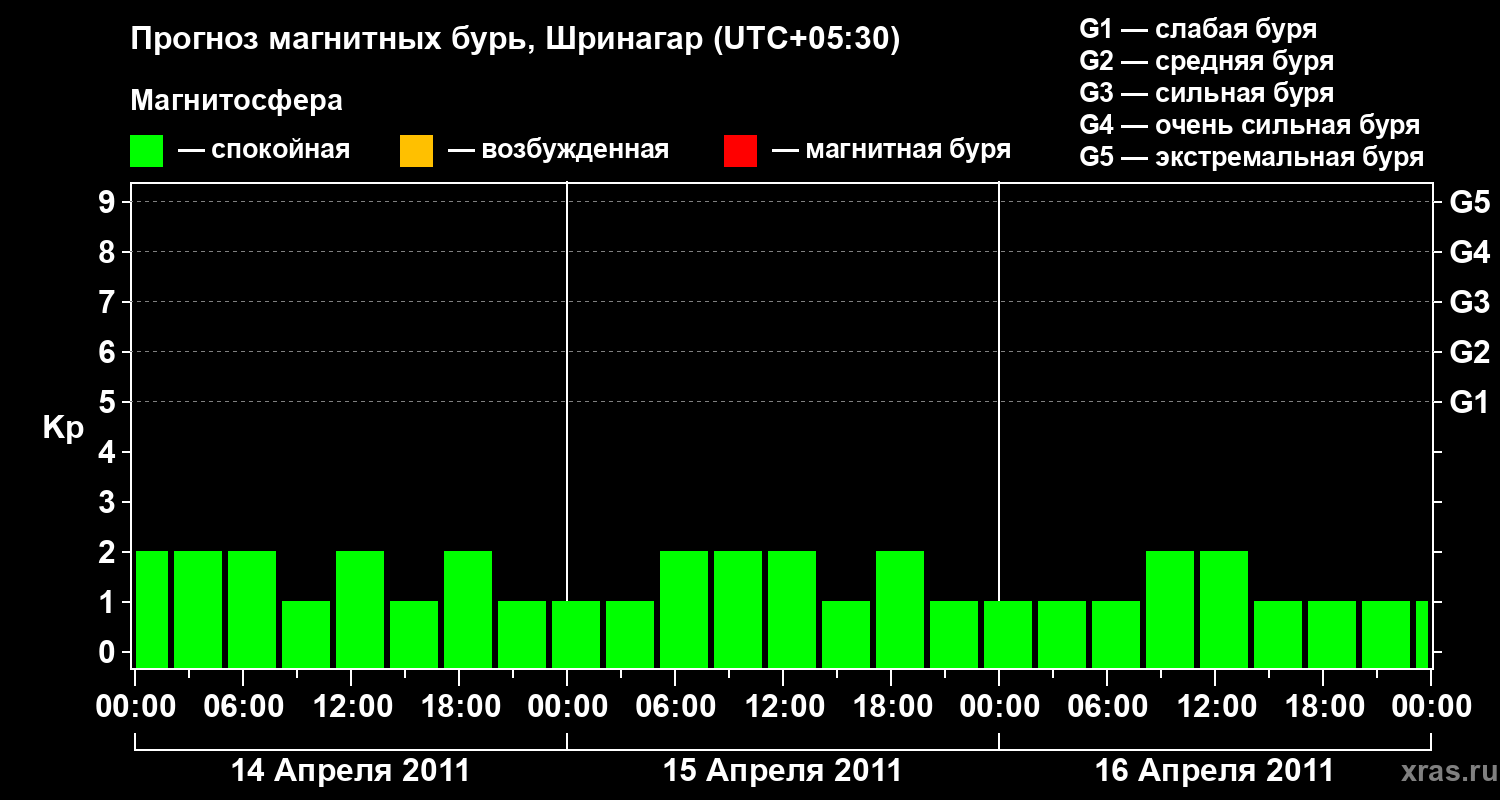 Прогноз магнитных бурь в Шринагаре — 14 апреля 2011 года