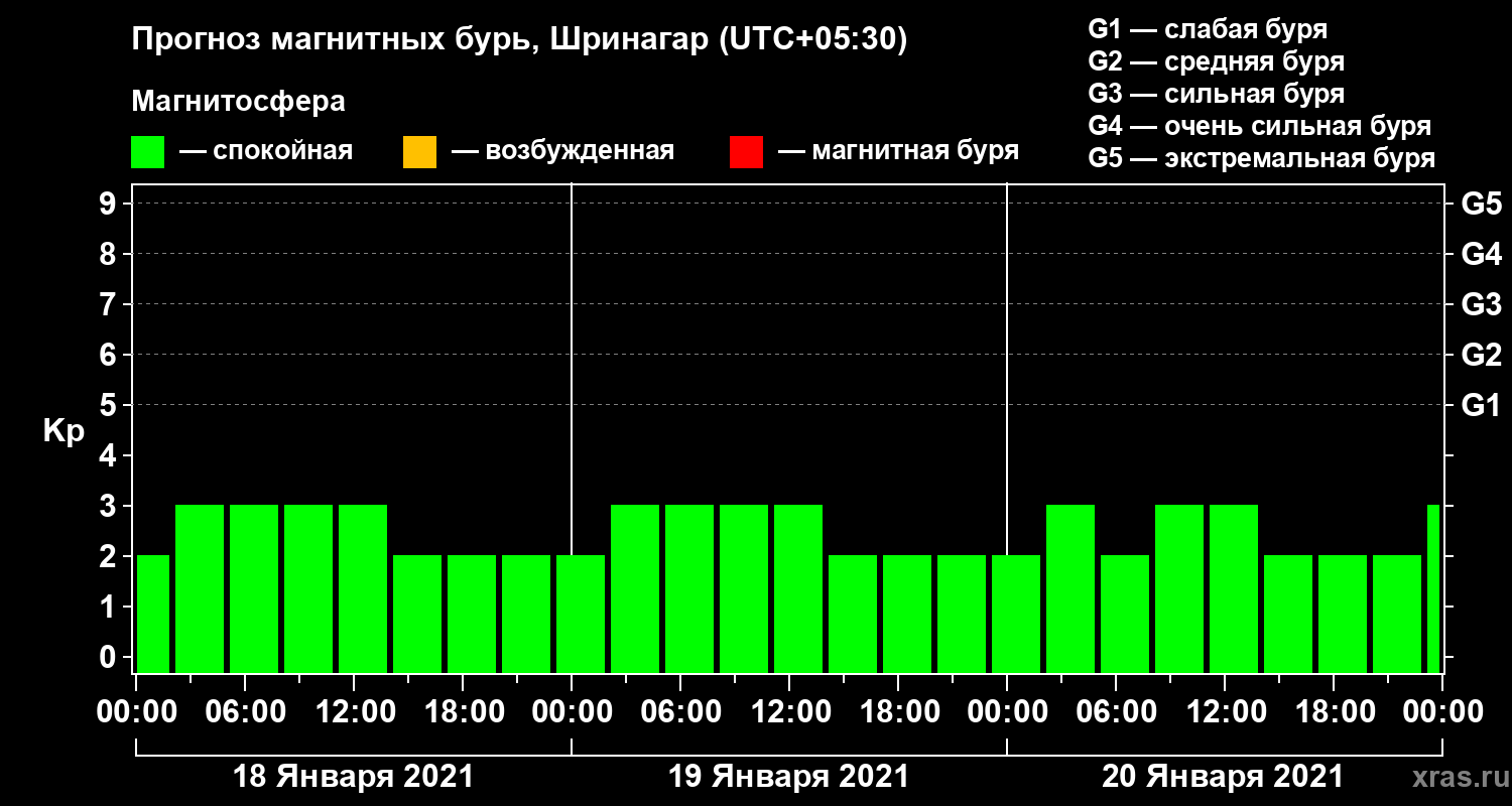 Прогноз магнитных бурь в Шринагаре — 18 января 2021 года