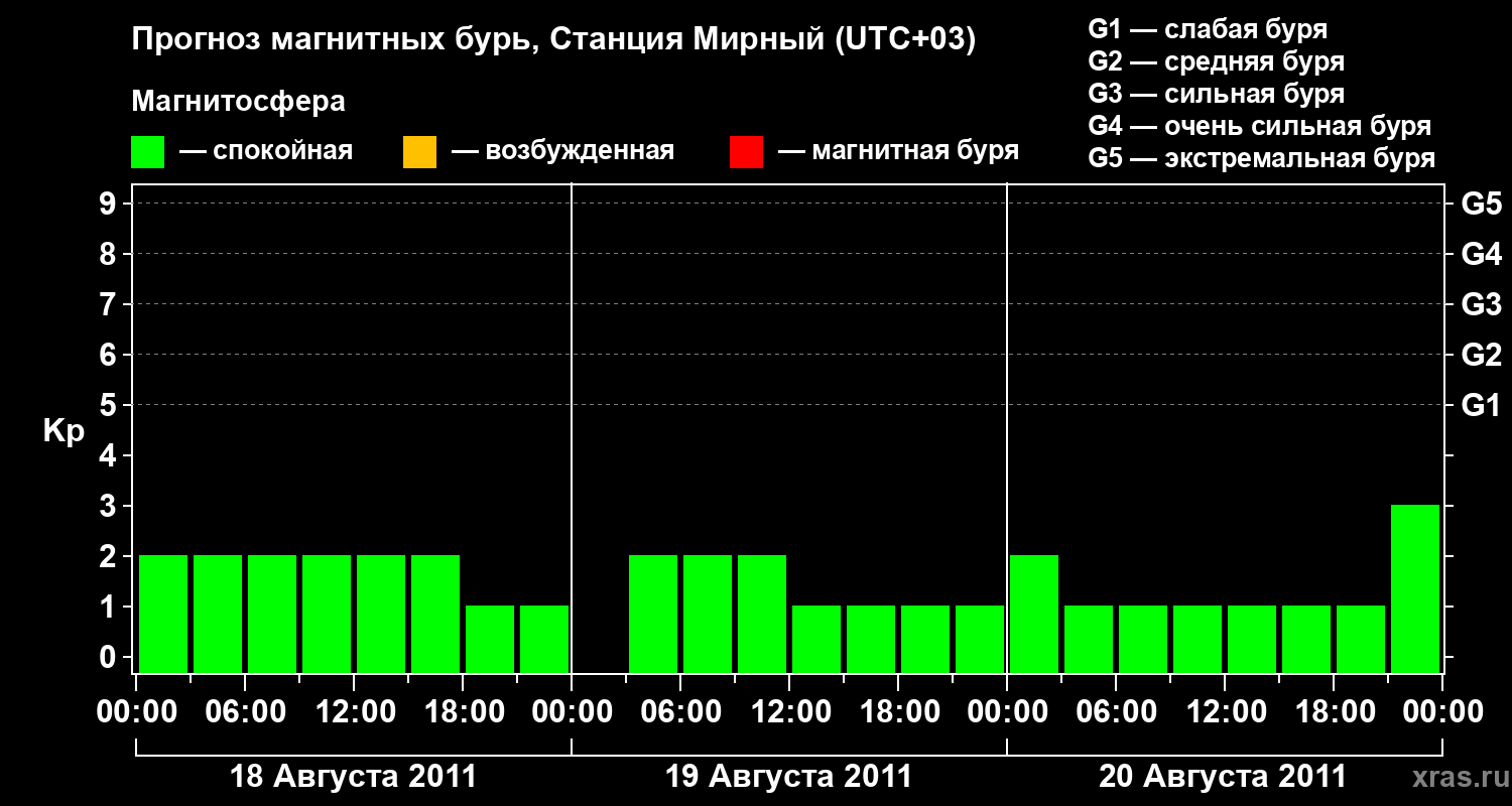 Прогноз магнитных бурь локации Станция Мирный — 18 августа 2011 года