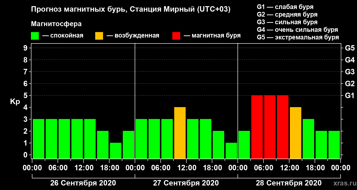 Прогноз магнитных бурь локации Станция Мирный — 26 сентября 2020 года