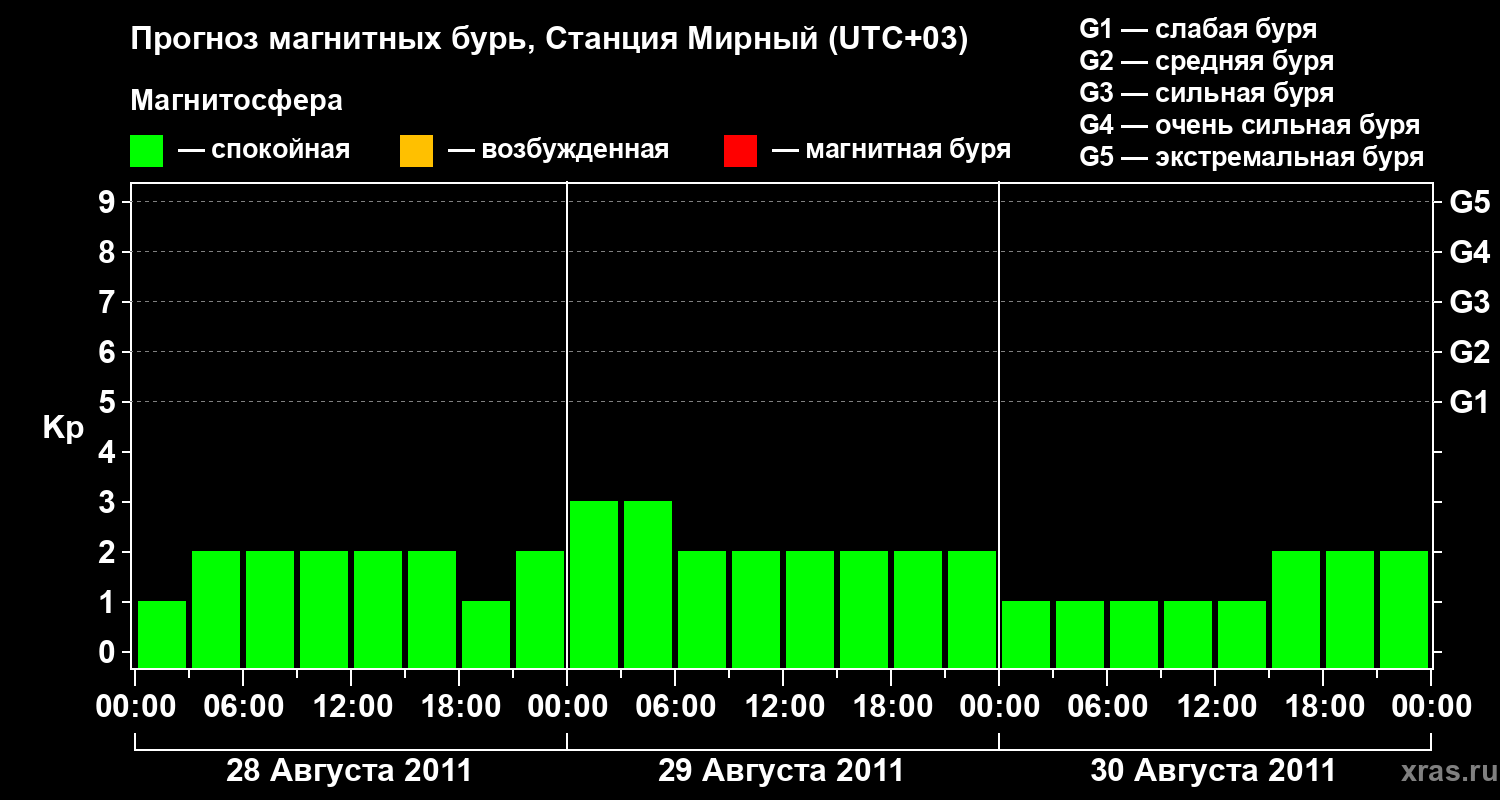 Прогноз магнитных бурь локации Станция Мирный — 28 августа 2011 года