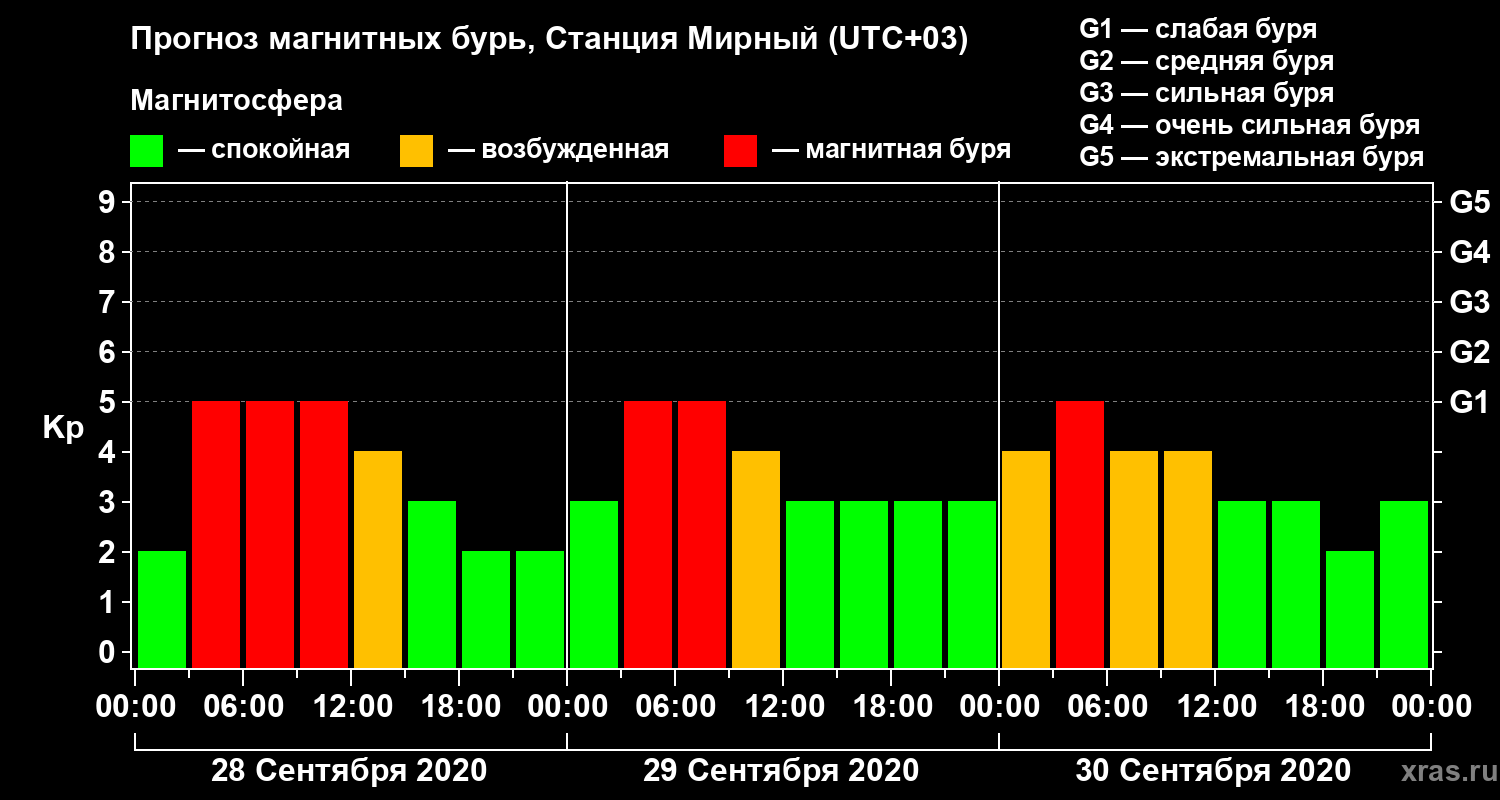 Прогноз магнитных бурь локации Станция Мирный — 28 сентября 2020 года