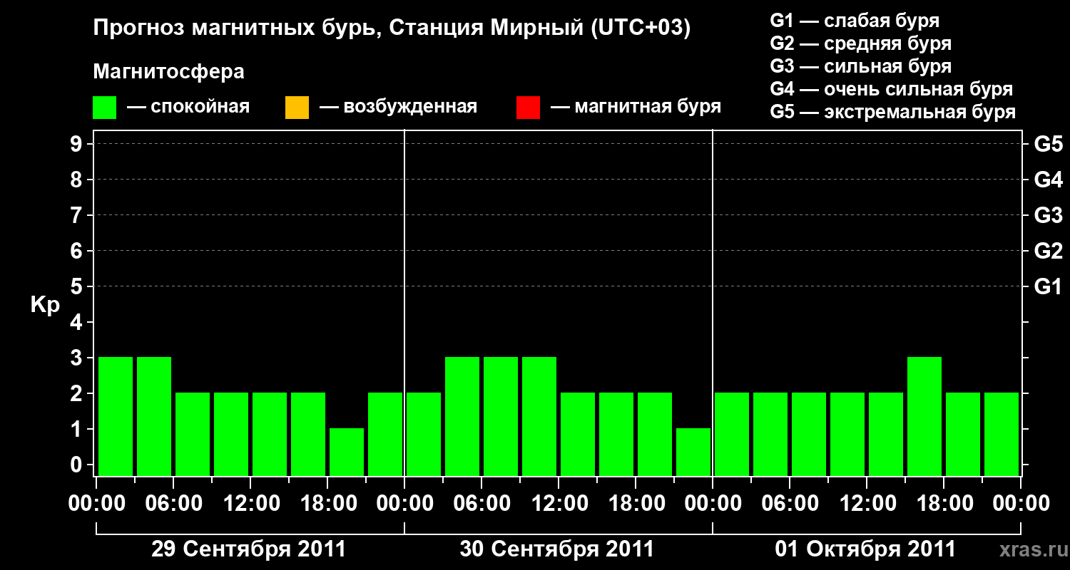 Прогноз магнитных бурь локации Станция Мирный — 29 сентября 2011 года