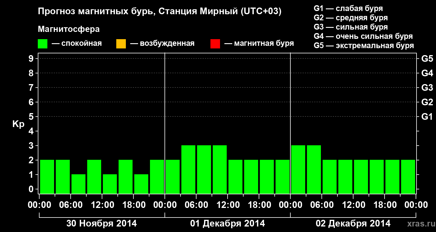 Прогноз магнитных бурь локации Станция Мирный — 30 ноября 2014 года
