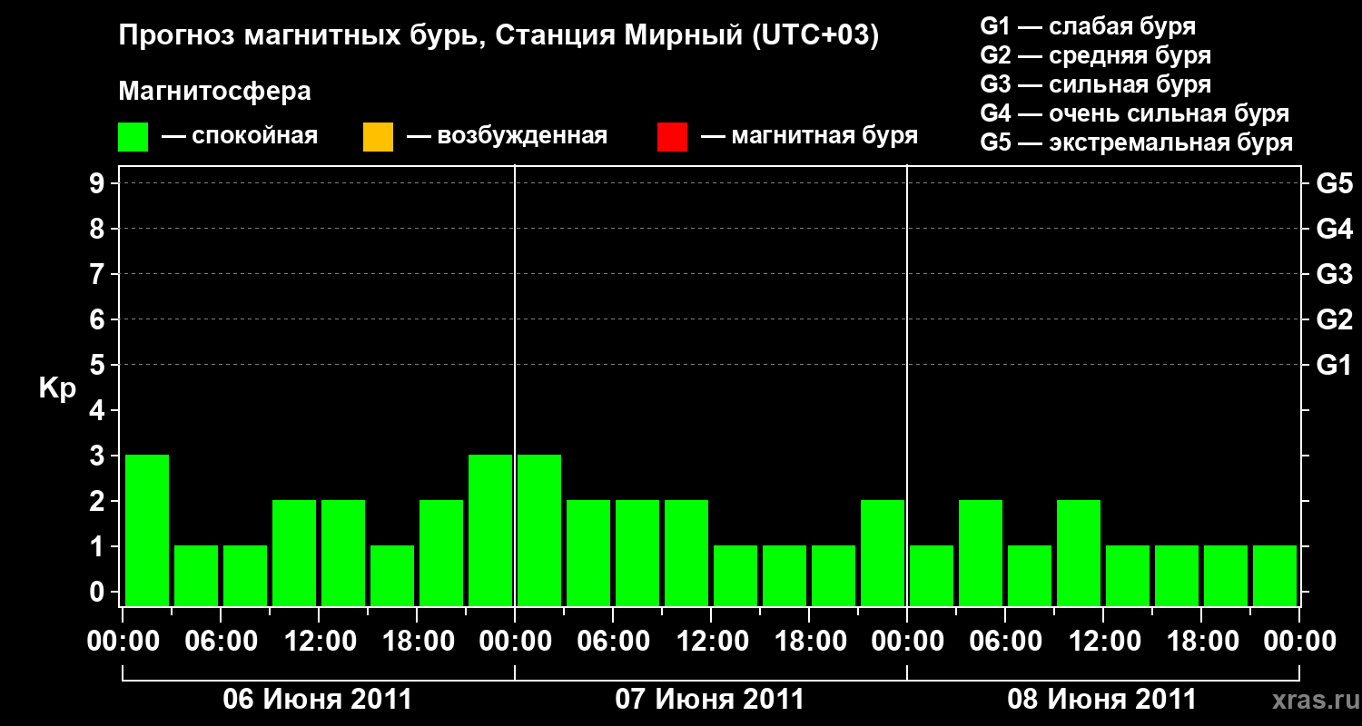Прогноз магнитных бурь локации Станция Мирный — 6 июня 2011 года