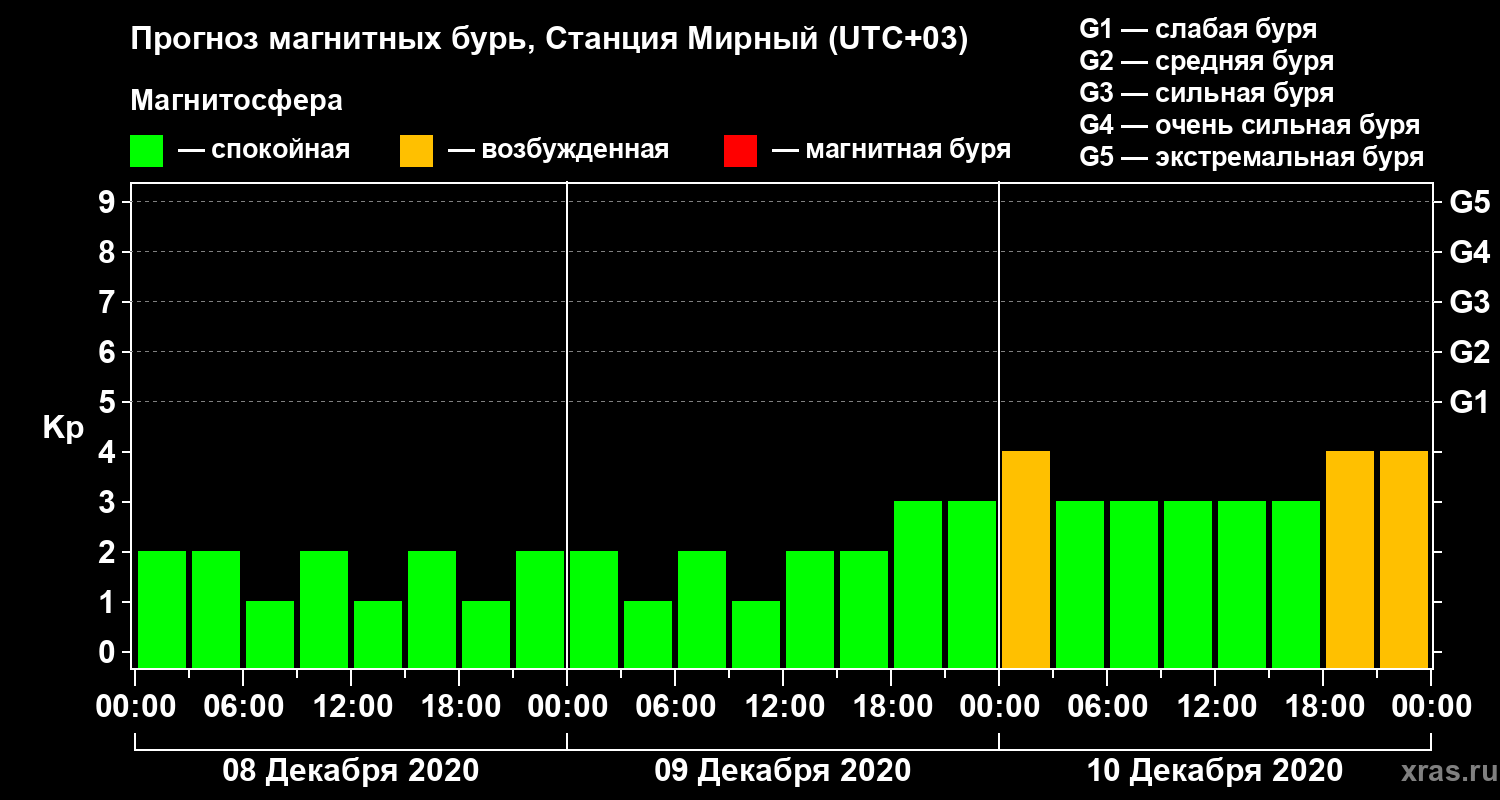 Прогноз магнитных бурь локации Станция Мирный — 8 декабря 2020 года
