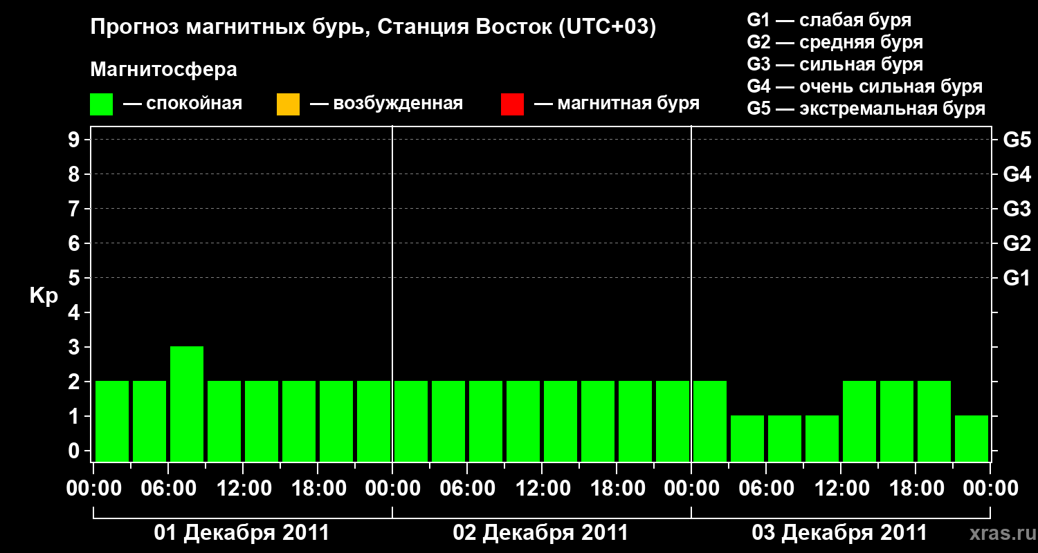 Прогноз магнитных бурь локации Станция Восток — 1 декабря 2011 года