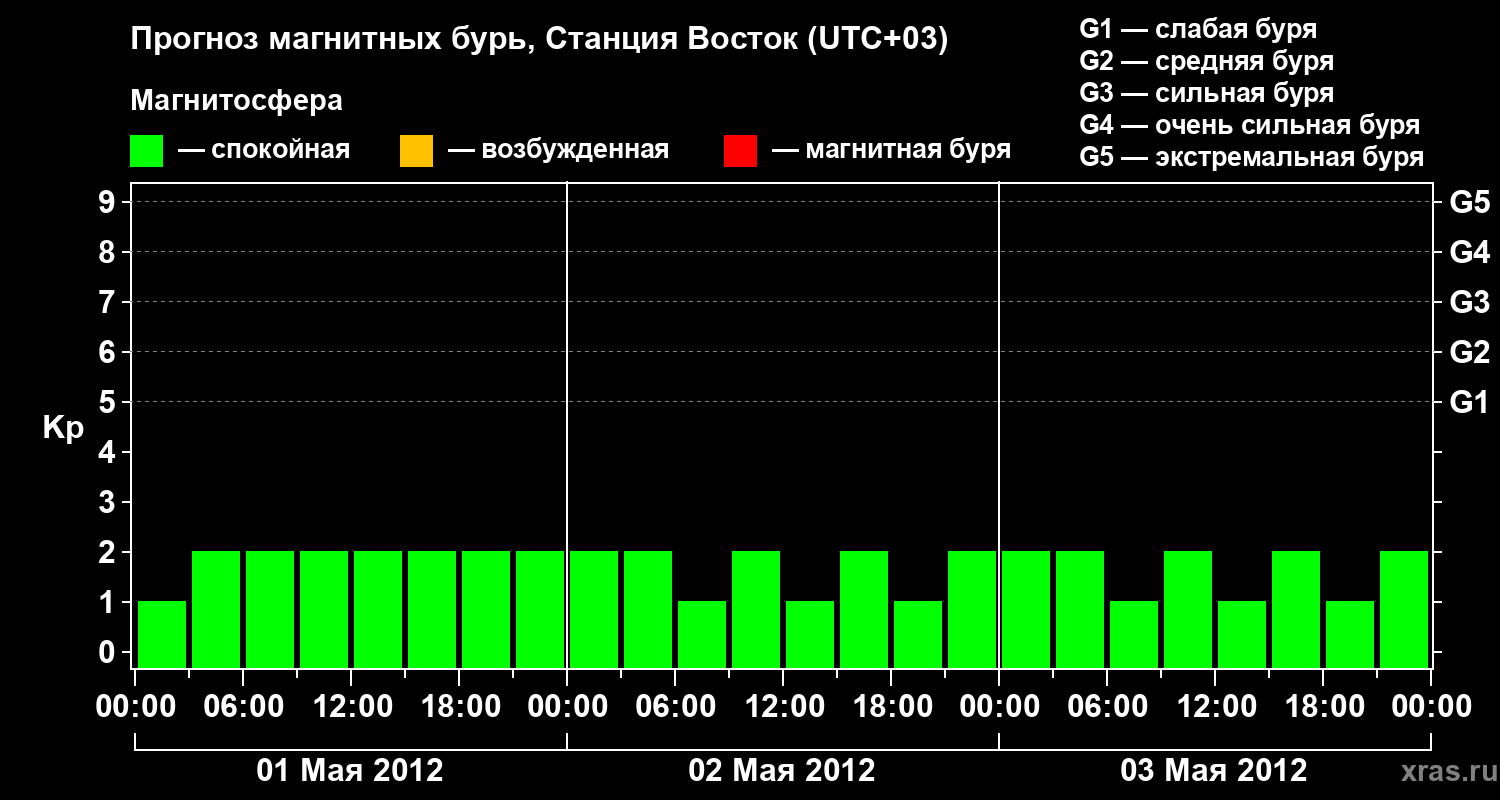 Прогноз магнитных бурь локации Станция Восток — 1 мая 2012 года