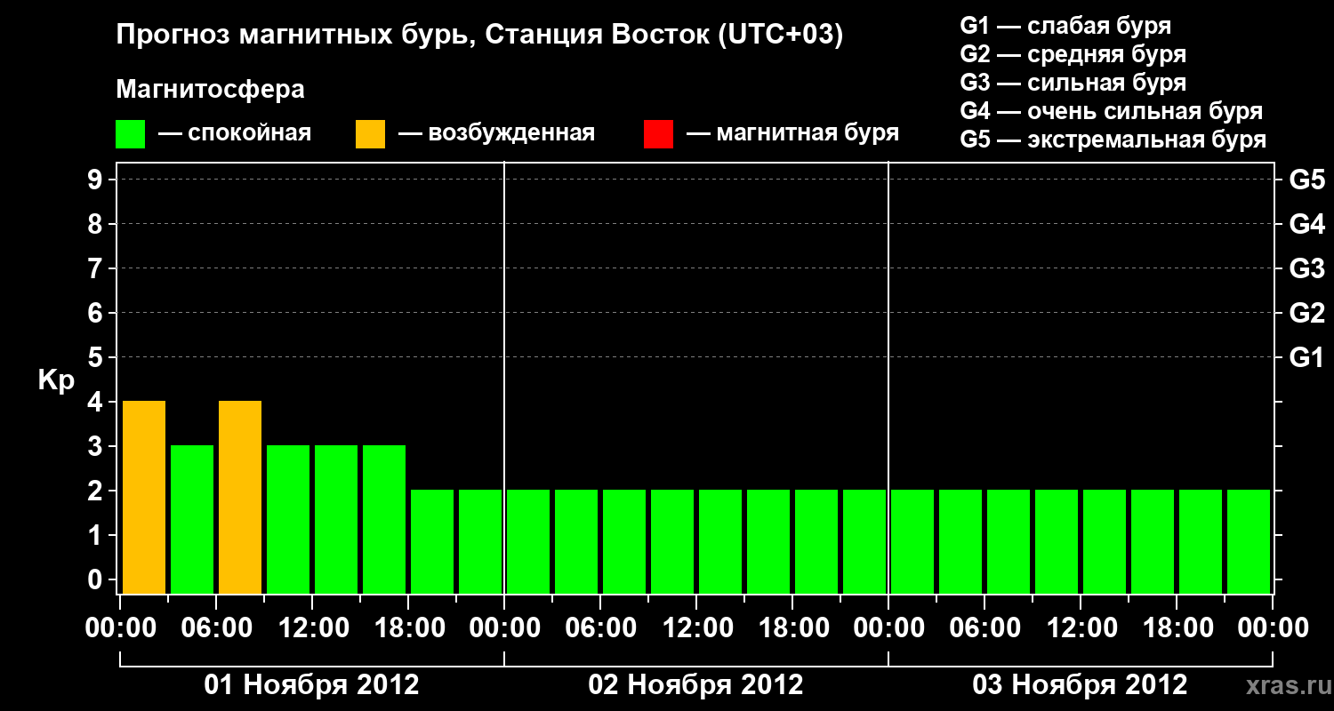 Прогноз магнитных бурь локации Станция Восток — 1 ноября 2012 года
