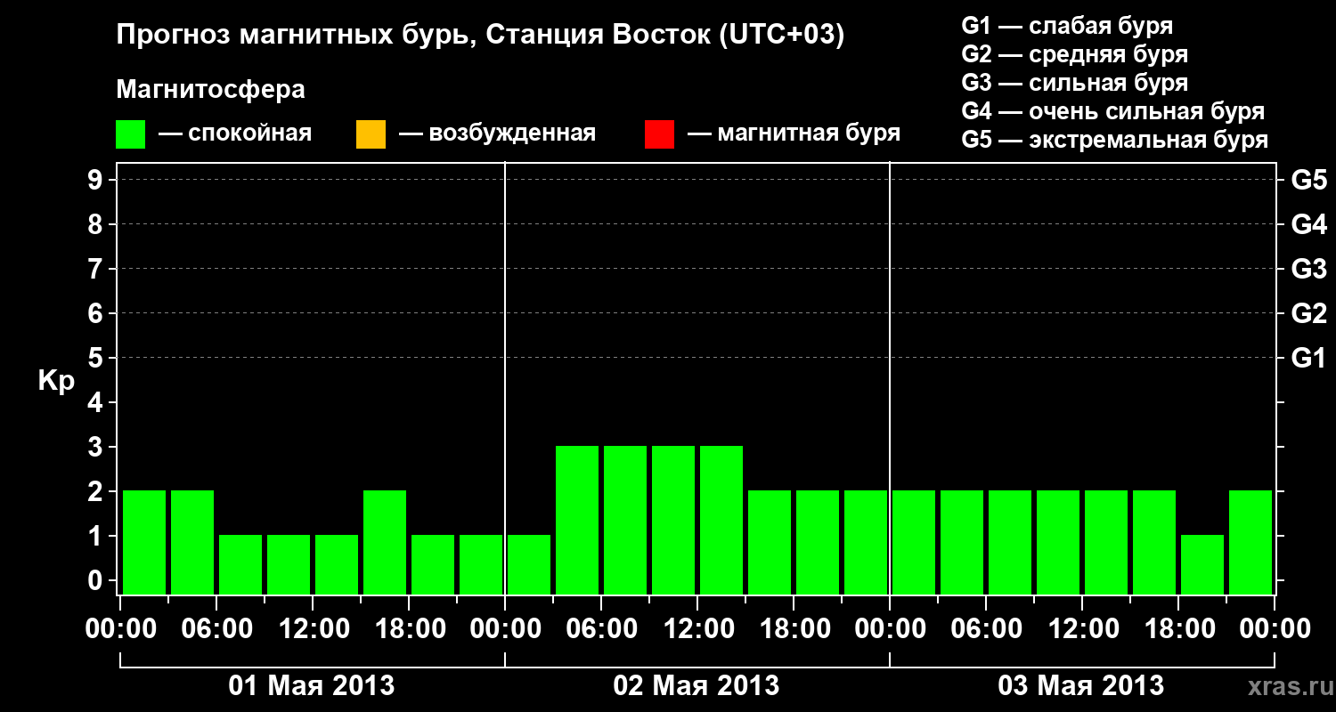 Прогноз магнитных бурь локации Станция Восток — 1 мая 2013 года