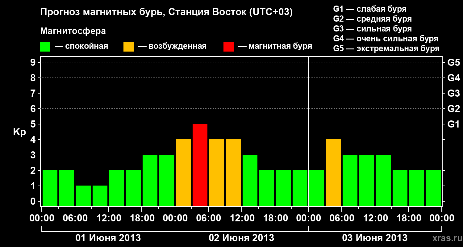 Прогноз магнитных бурь локации Станция Восток — 1 июня 2013 года