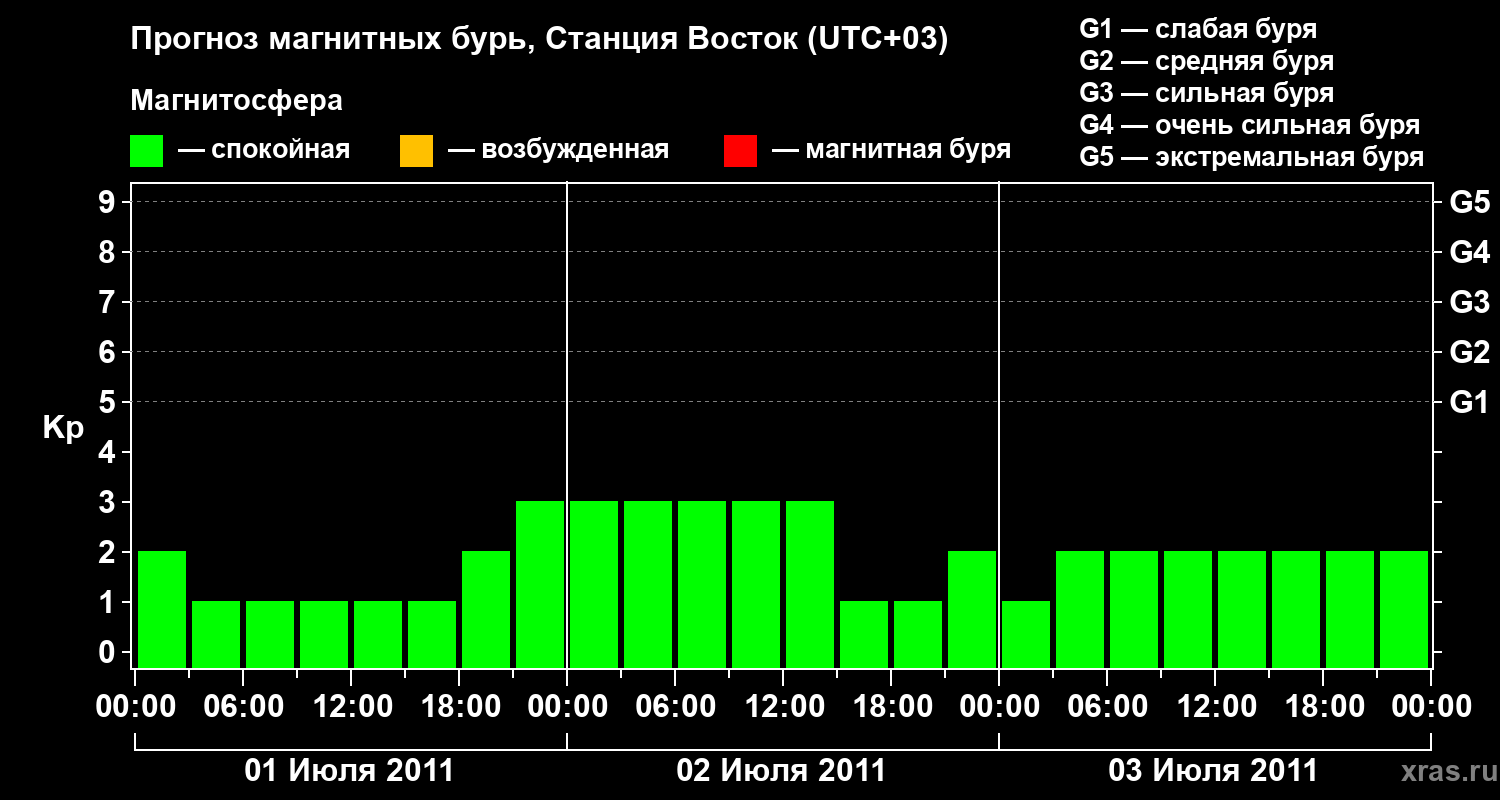 Прогноз магнитных бурь локации Станция Восток — 1 июля 2011 года
