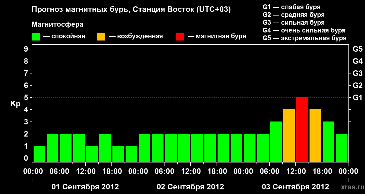Прогноз магнитных бурь локации Станция Восток — 1 сентября 2012 года