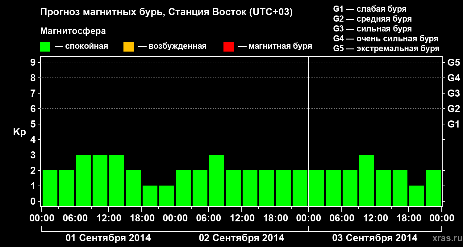 Прогноз магнитных бурь локации Станция Восток — 1 сентября 2014 года
