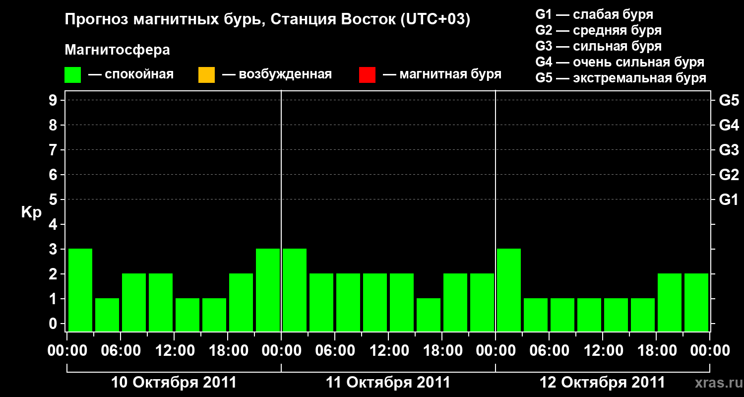 Прогноз магнитных бурь локации Станция Восток — 10 октября 2011 года