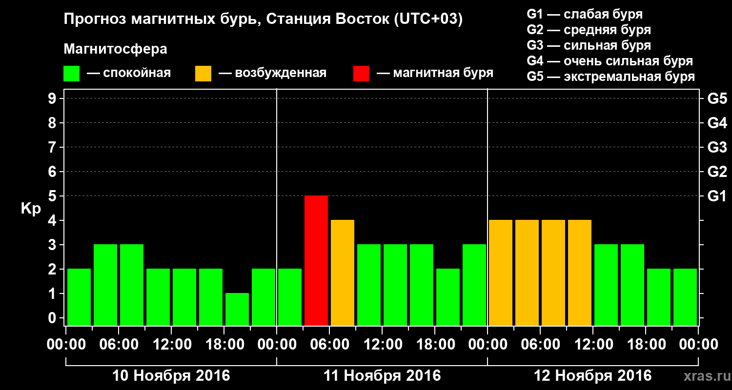 Прогноз магнитных бурь локации Станция Восток — 10 ноября 2016 года
