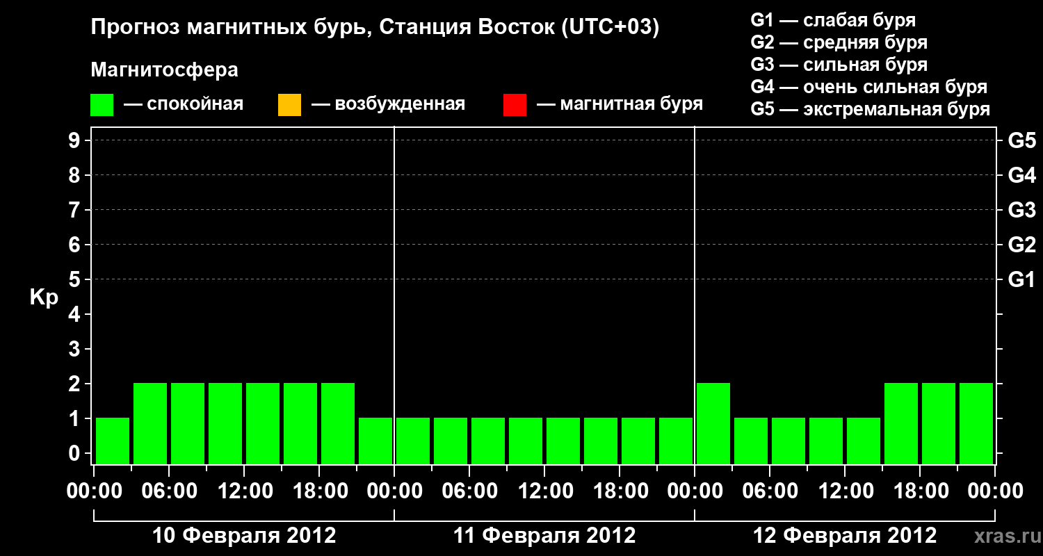 Прогноз магнитных бурь локации Станция Восток — 10 февраля 2012 года
