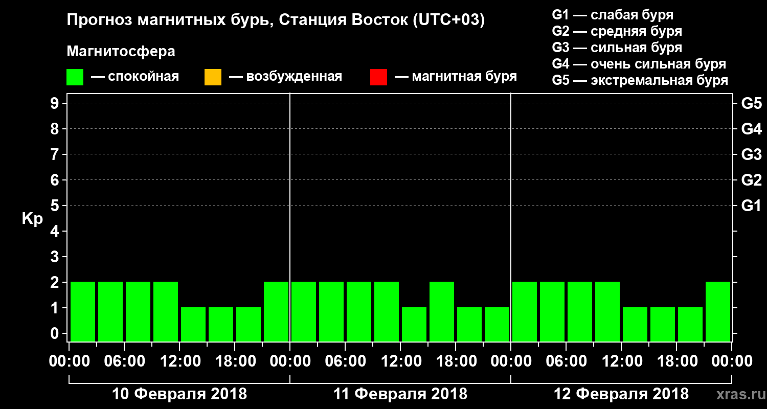 Прогноз магнитных бурь локации Станция Восток — 10 февраля 2018 года